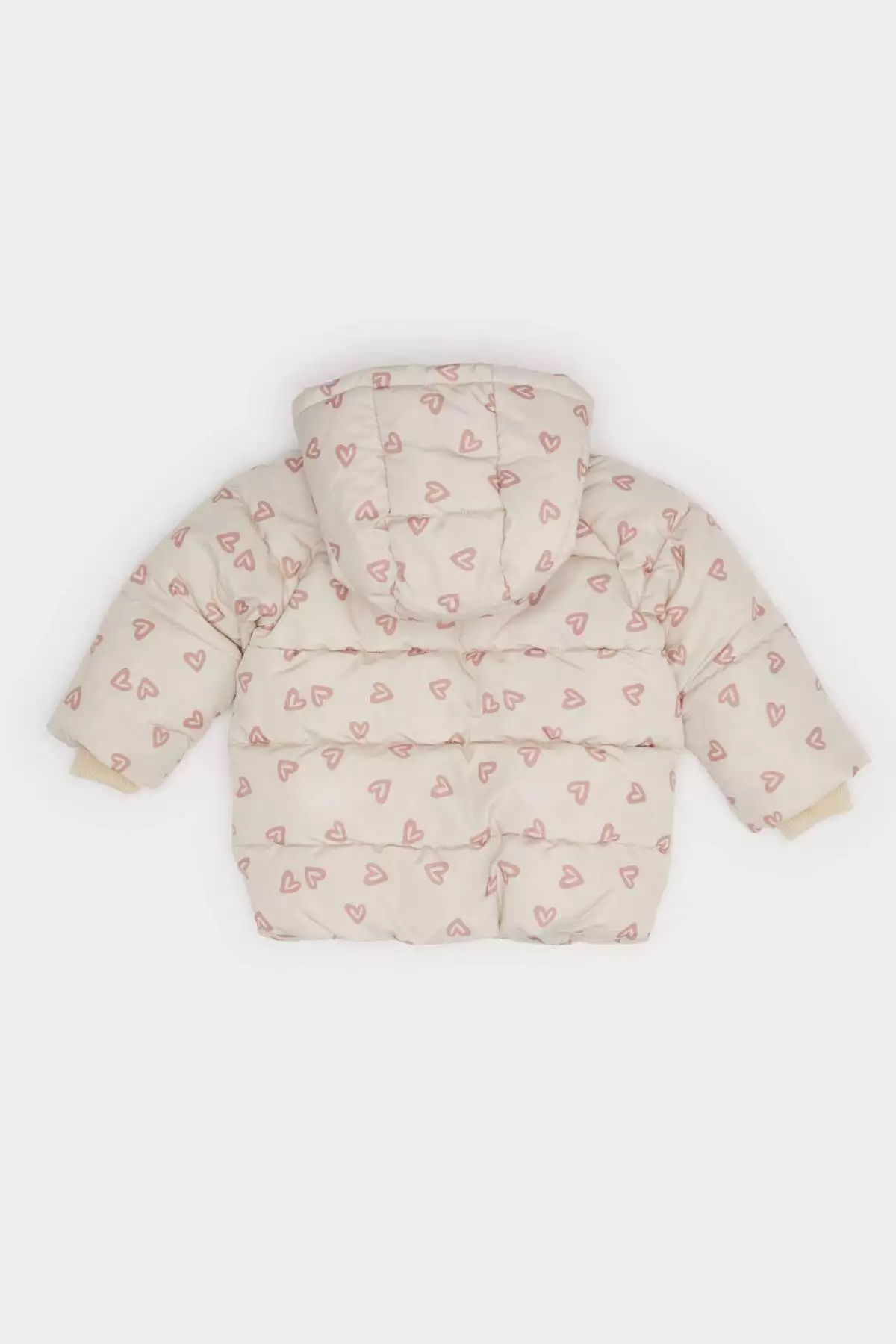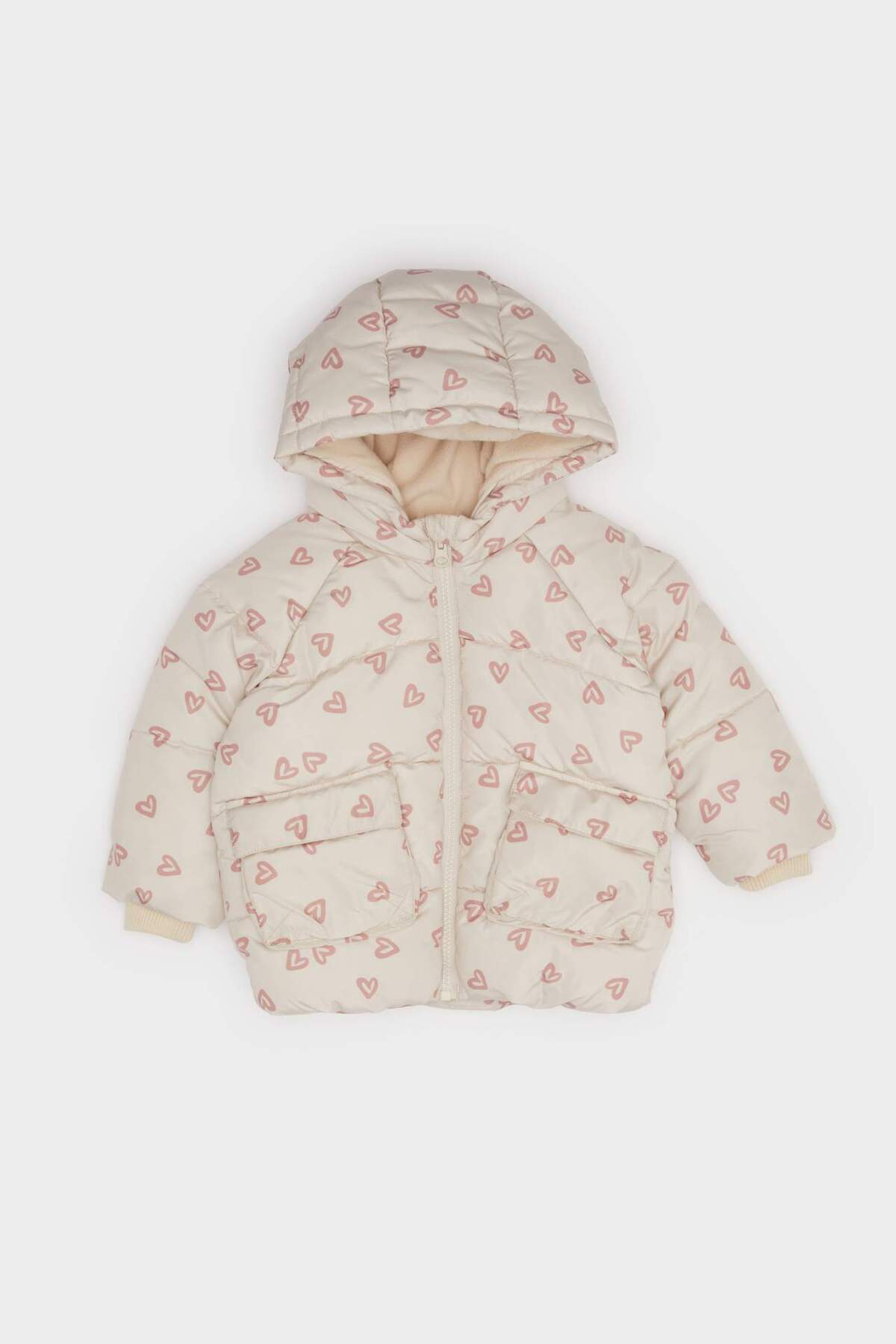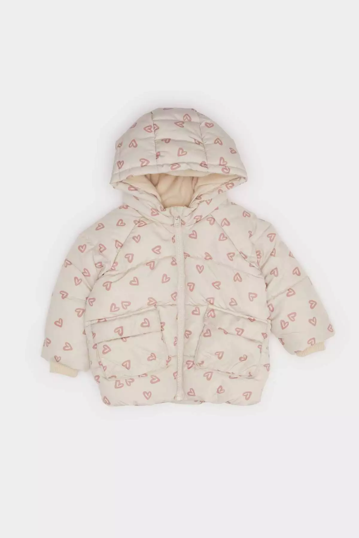 کاپشن پفکی دخترانه با طراحی زیبا و کلاهدار، ضد باد و ضد آب، با زیپ E7960A525AU برند Defacto