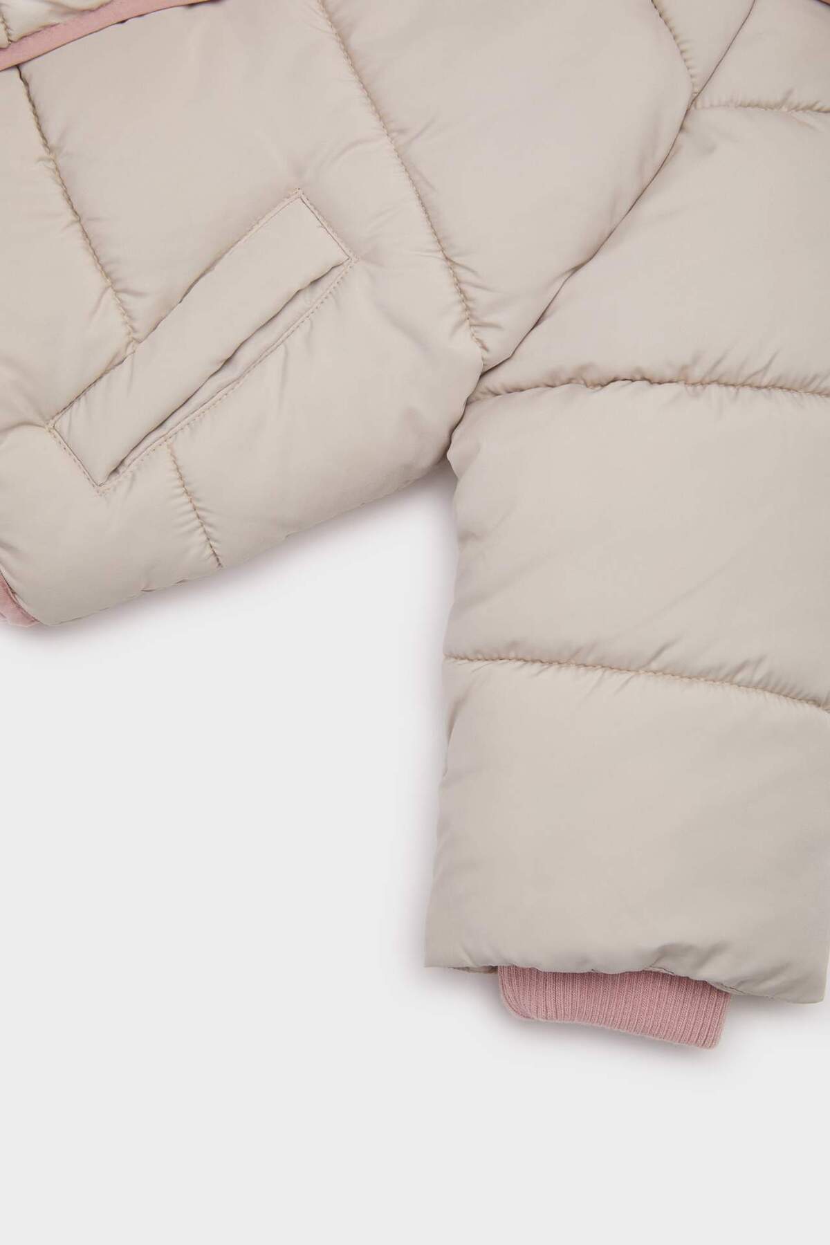 کاپشن پفی دخترانه با آستینهای ریبانا و کلاهدار، با دکمه و ضد آب مدل C5312A524AU برند Defacto