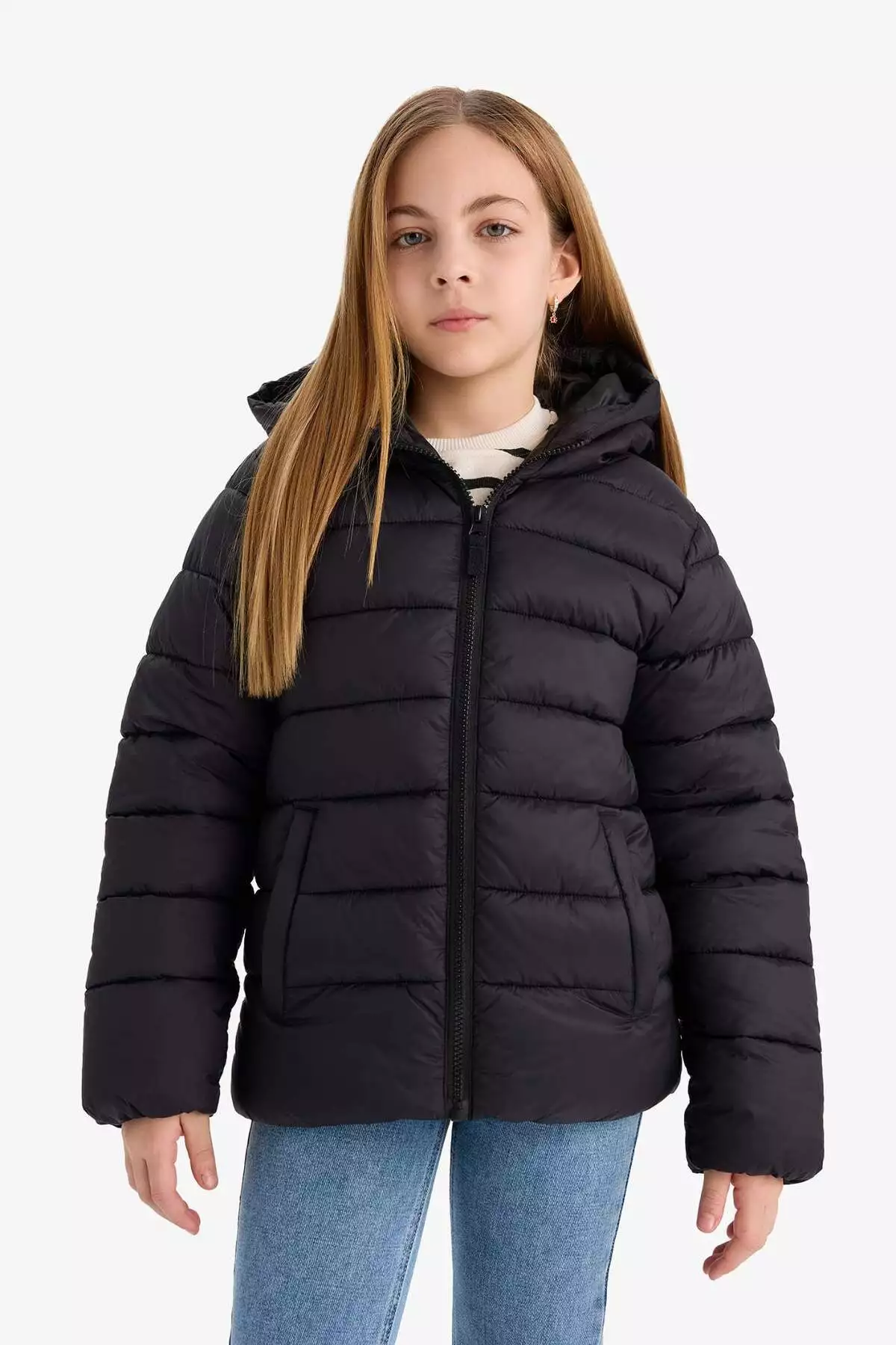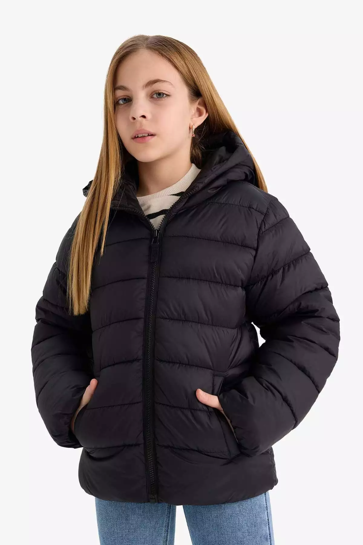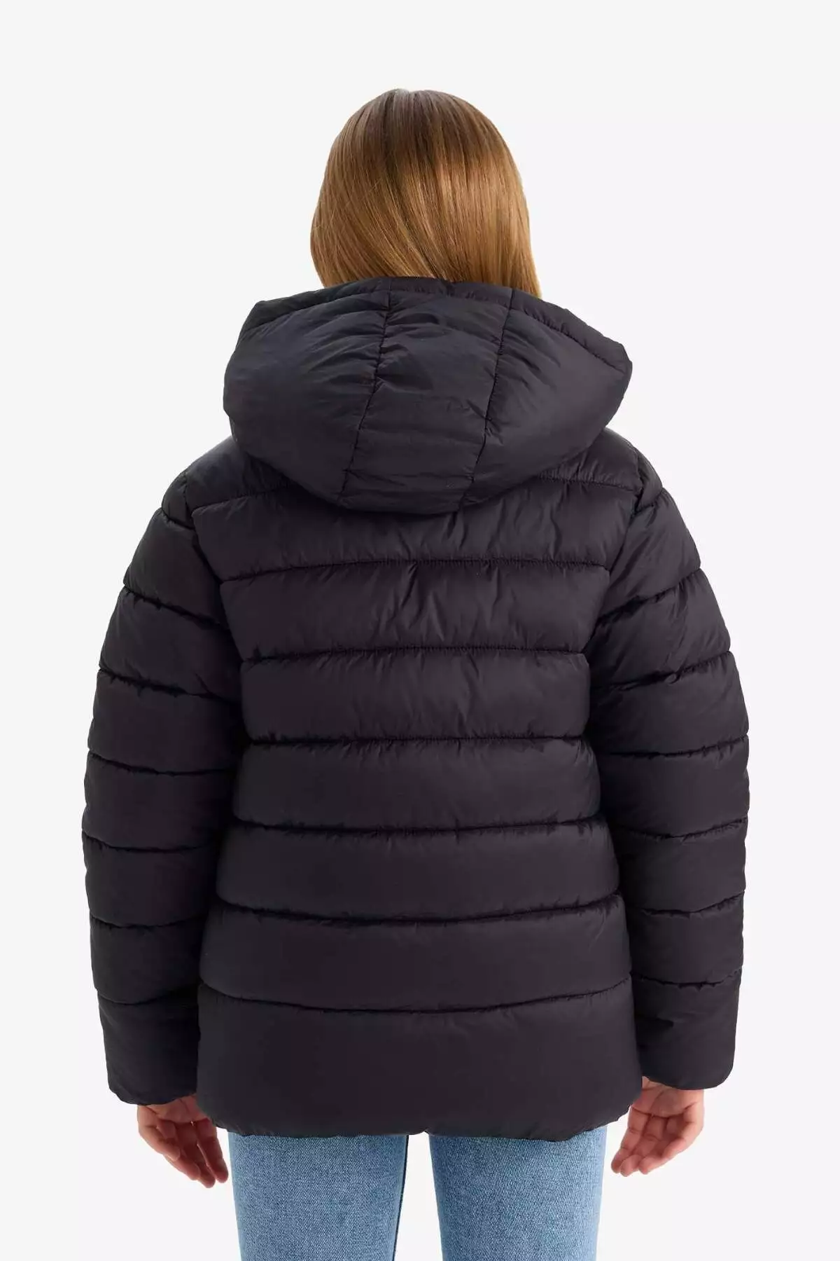 کاپشن پفی زیپ‌دار با کلاه ضد آب برای دختران بچه E5406A825AU برند Defacto - 968861380