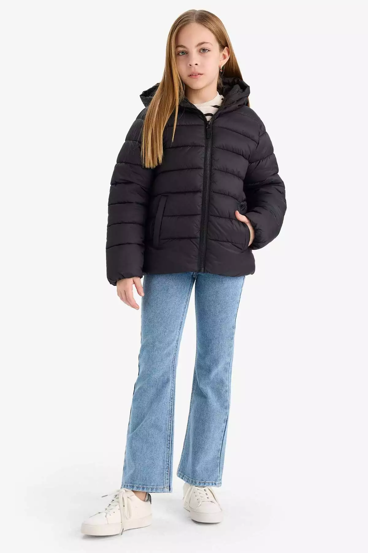 کاپشن پفی زیپ‌دار با کلاه ضد آب برای دختران بچه E5406A825AU برند Defacto – 968861380