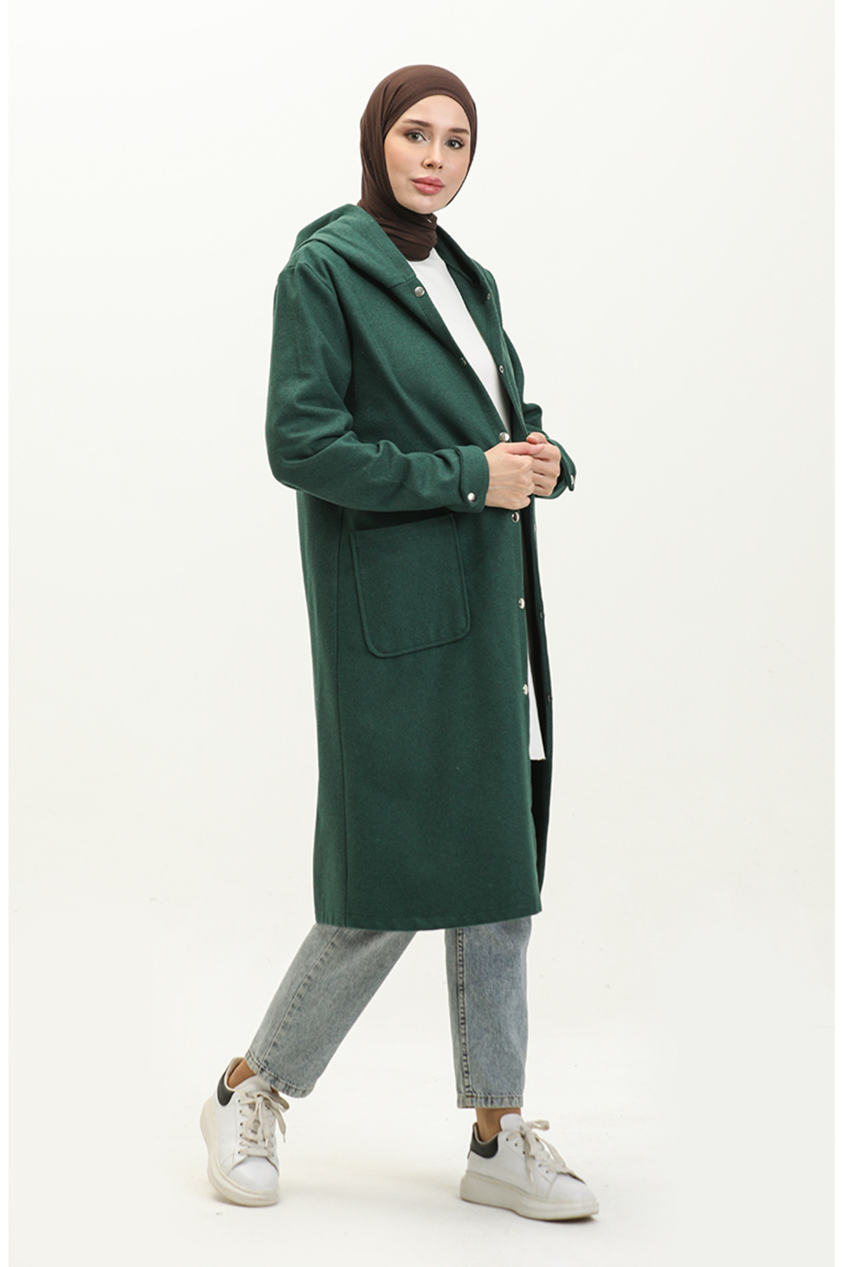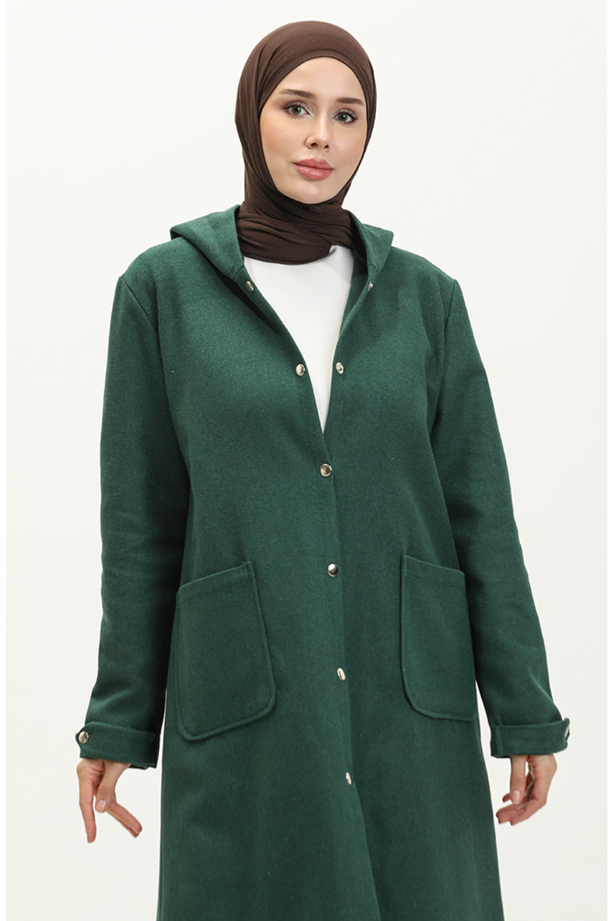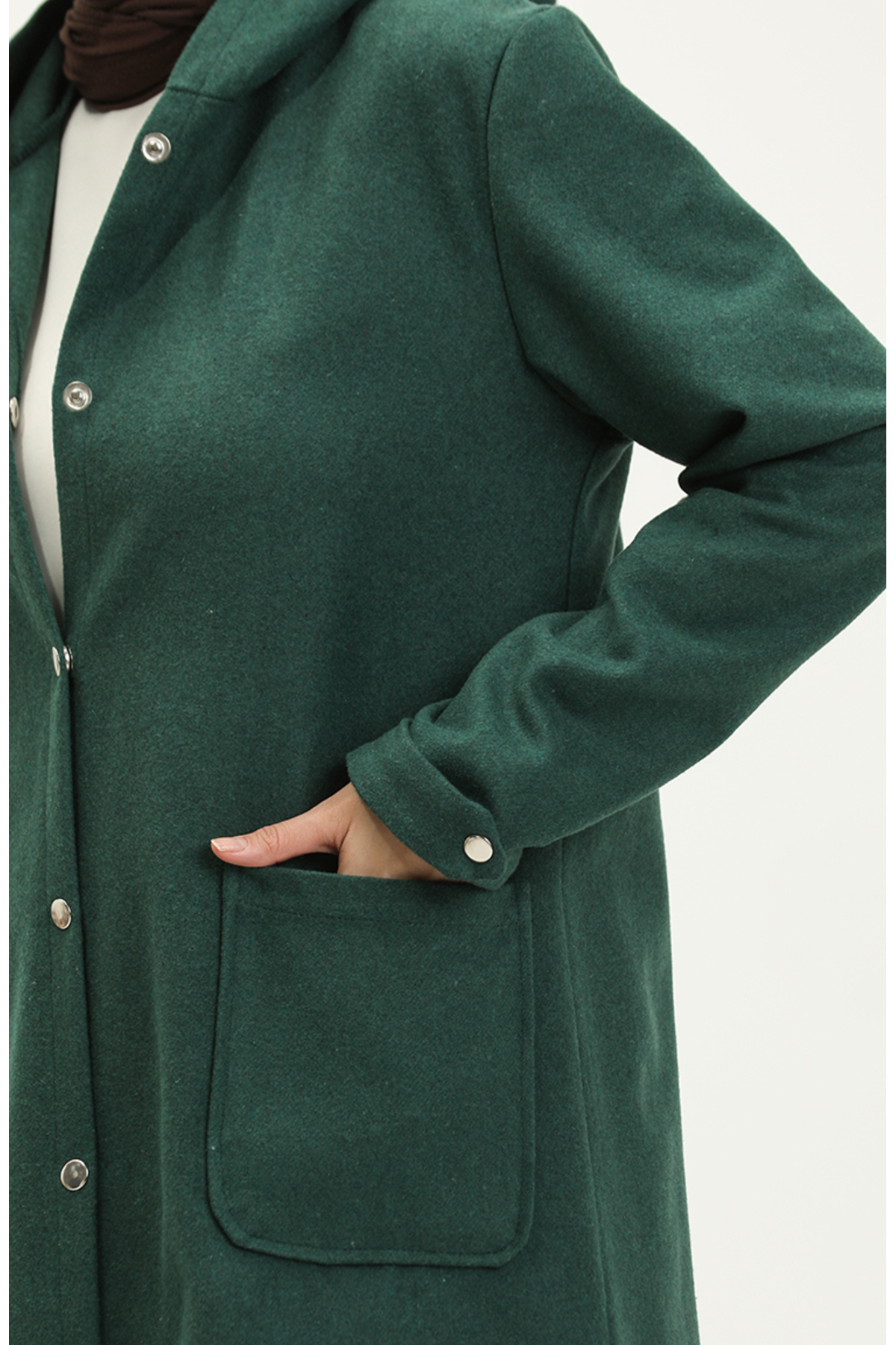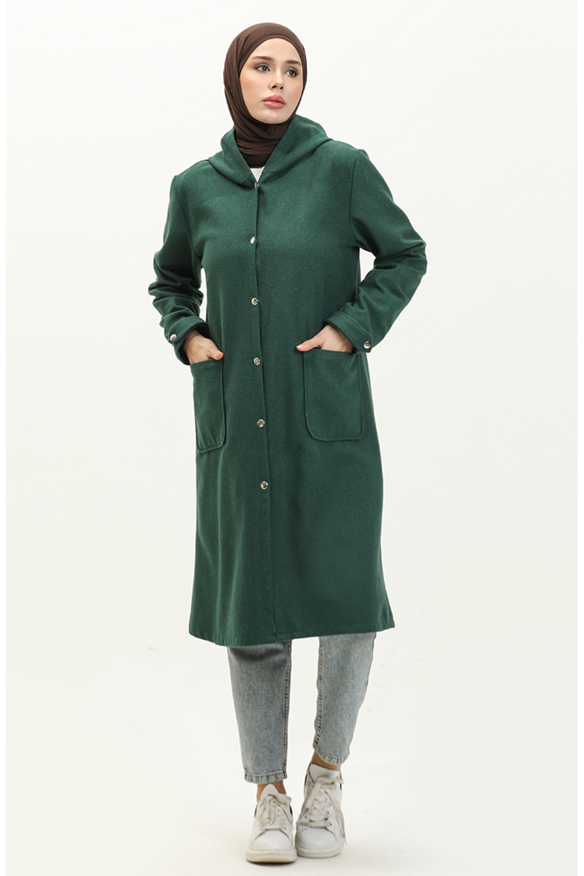 کاپشن کاشفی با کلاه 1691-01 به رنگ سبز زمردی برند sefamerve