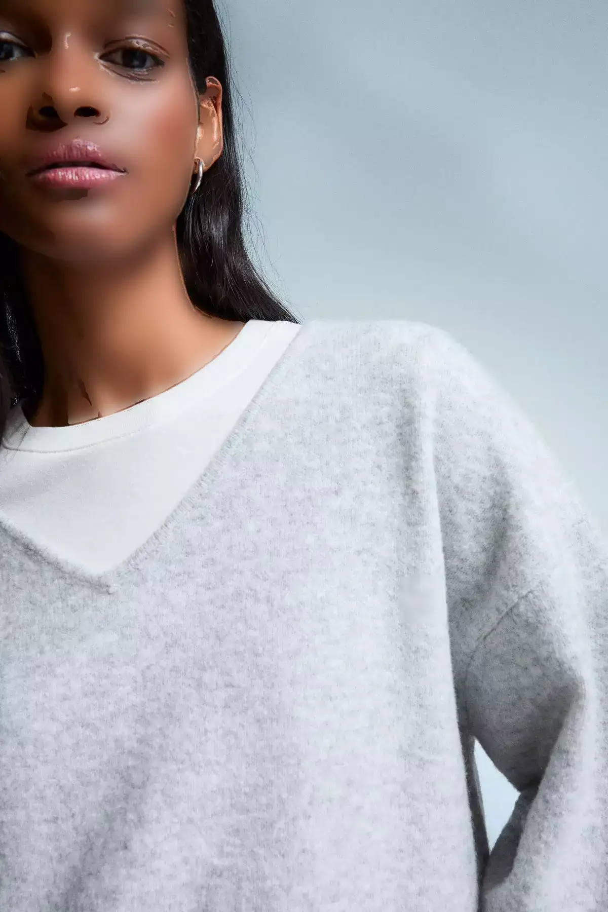 محصول با طراحی متنوع و رنگ خاکستری، به راحتی با سایر لباسها ست میشود. یقه باز آن احساس آزادی بیشتری را فراهم میکند و مناسب برای روزهای خنک است.
