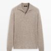 کاپشن یقه V با ترکیب پشم برند Massimo Dutti
