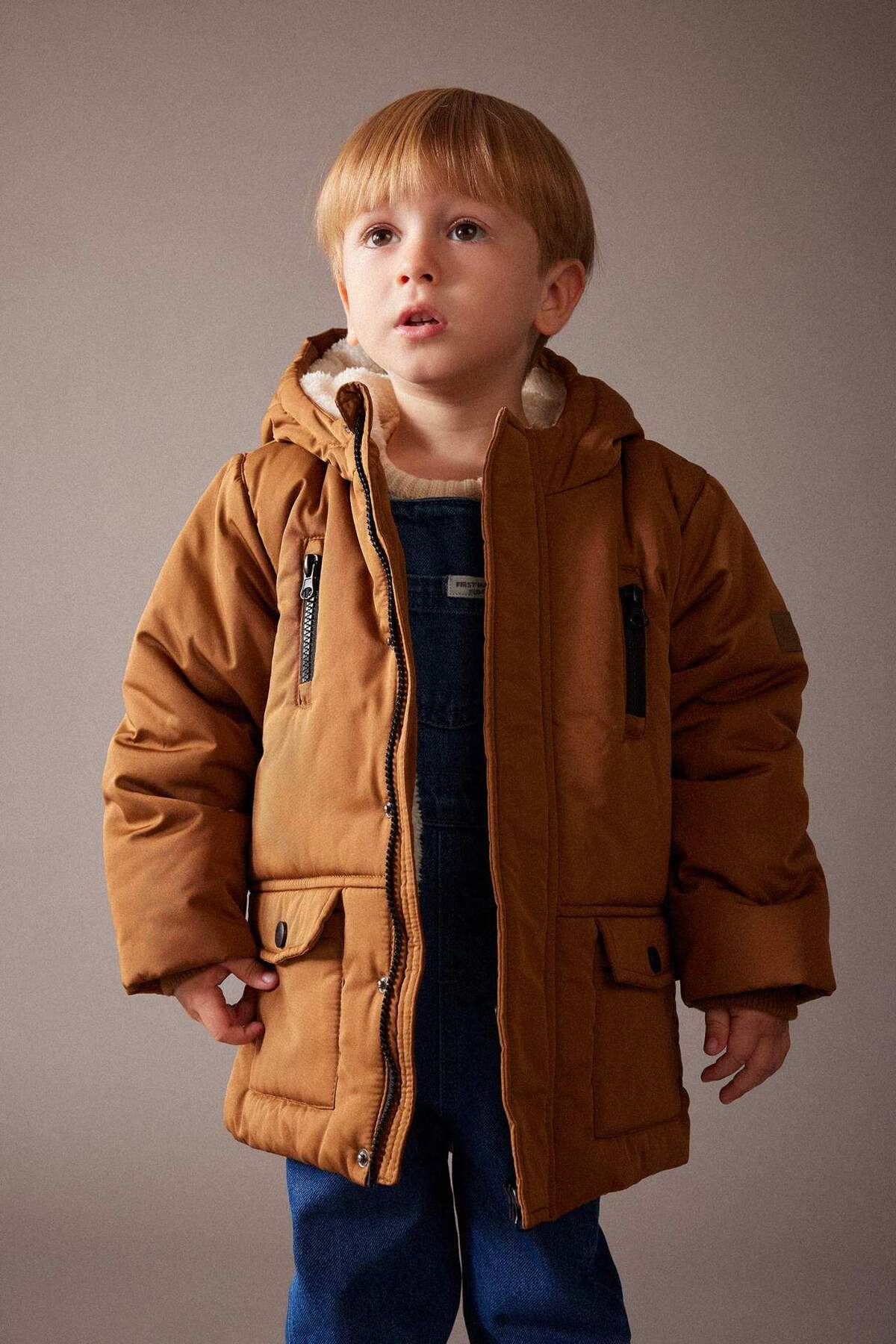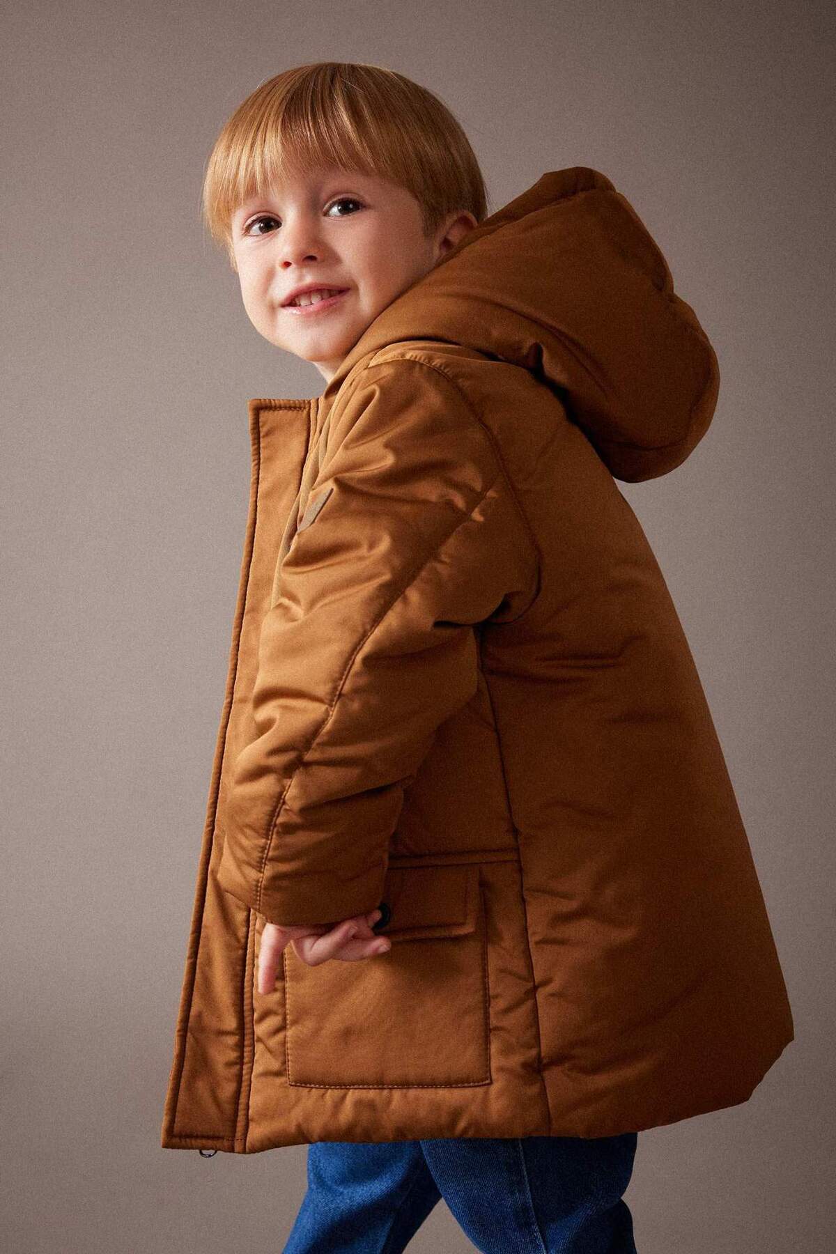 کتان پسرانه با آستین ربان و کلاهِ هودی با آستر پشمی مدل A2211A524WN برند Defacto