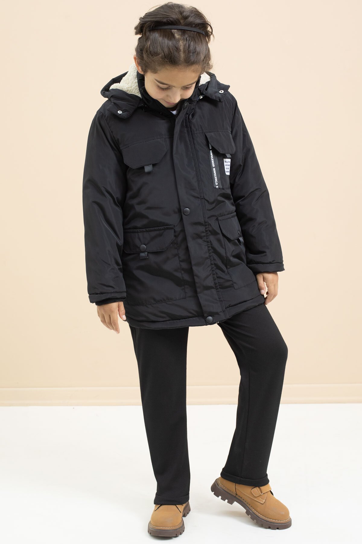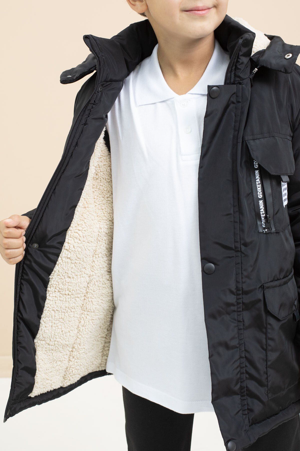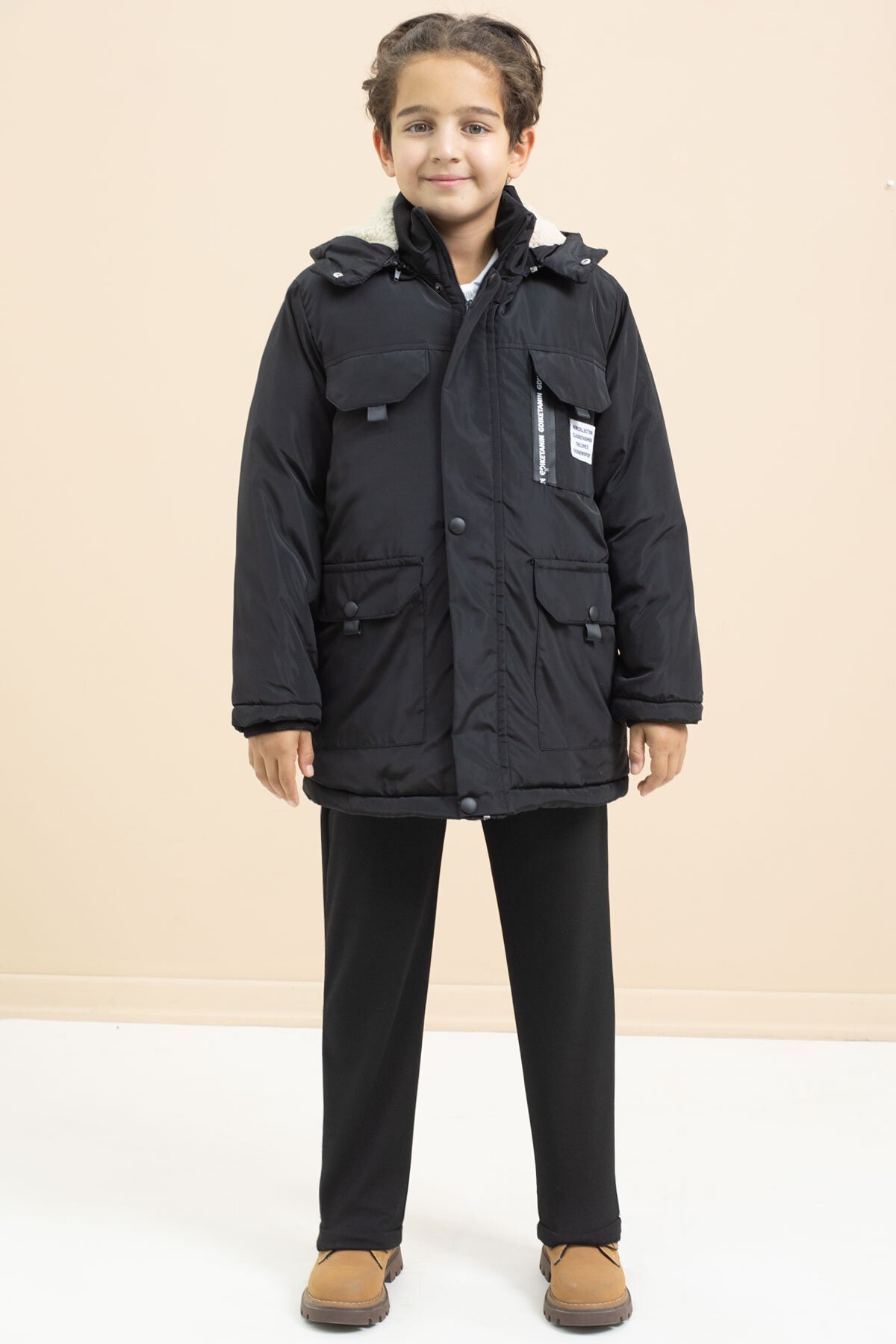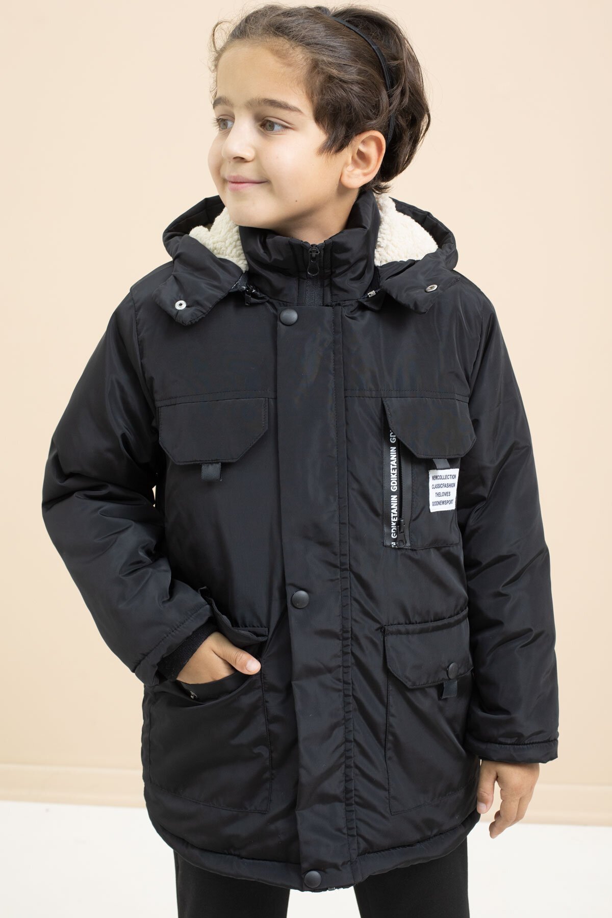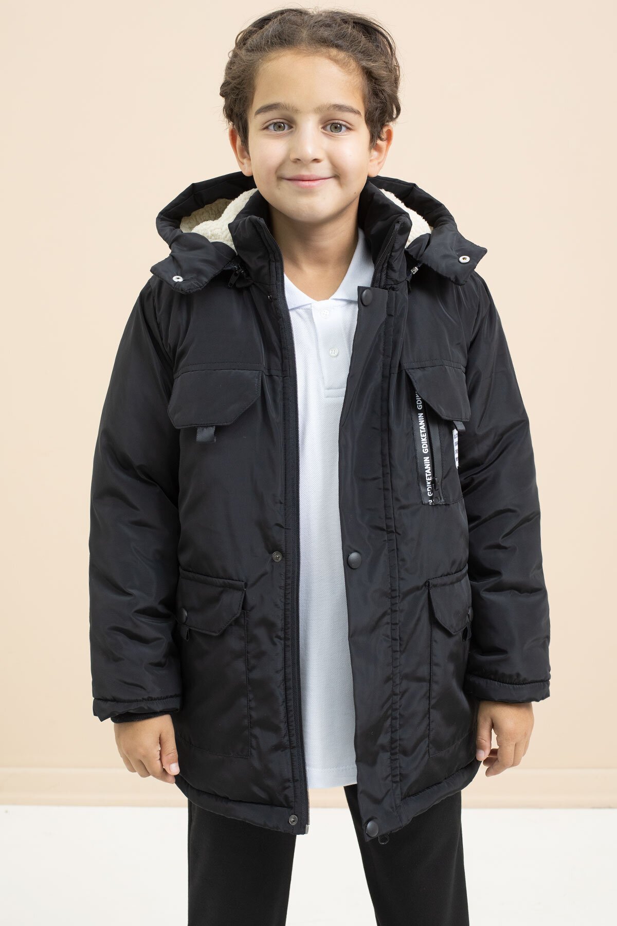 کت بالابند مشکی با جیب سینه و آستر پشمی برای پسران 21475 برند Cansın Mini