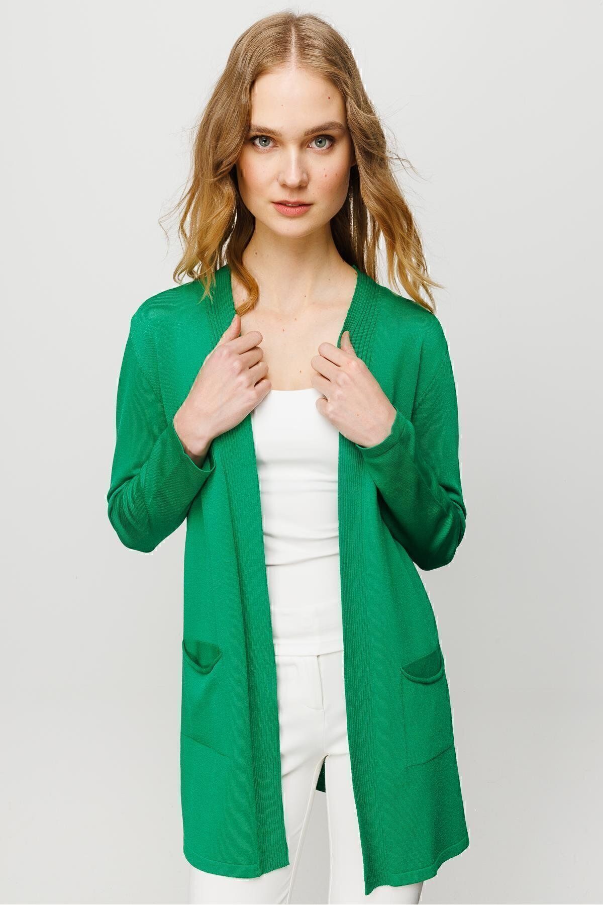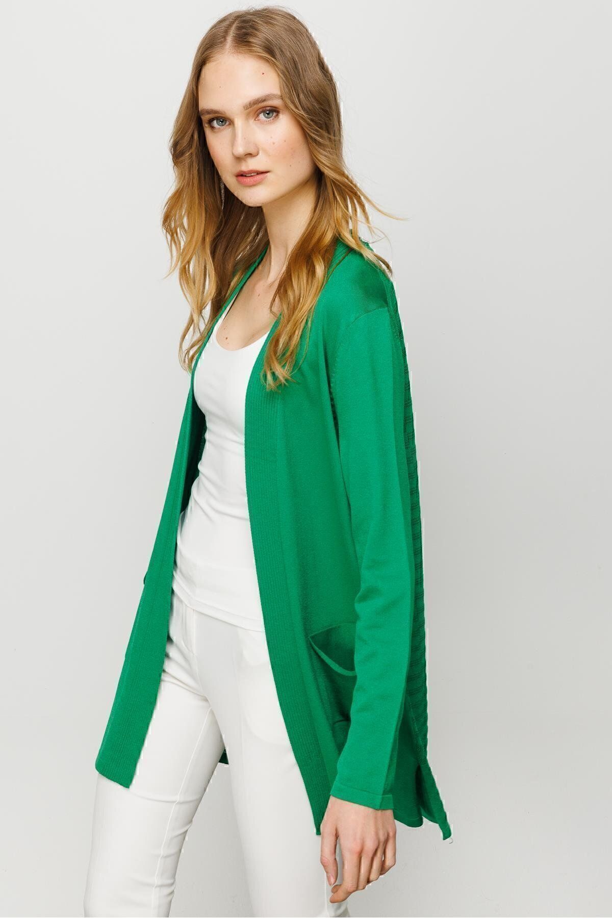 کت جیب دار تابستانی بلند طرح‎دار پشت سبز زنانه برند Desen Triko کد 1720634894