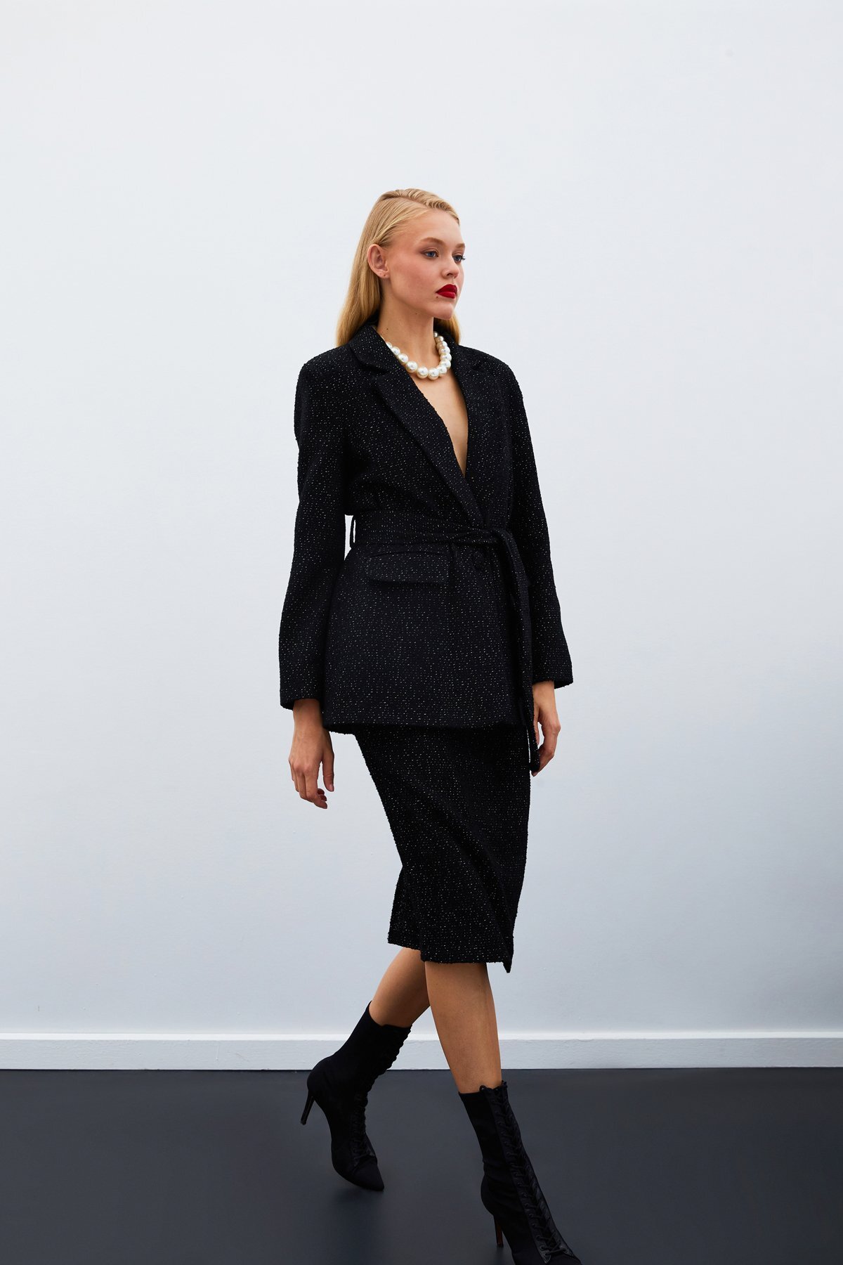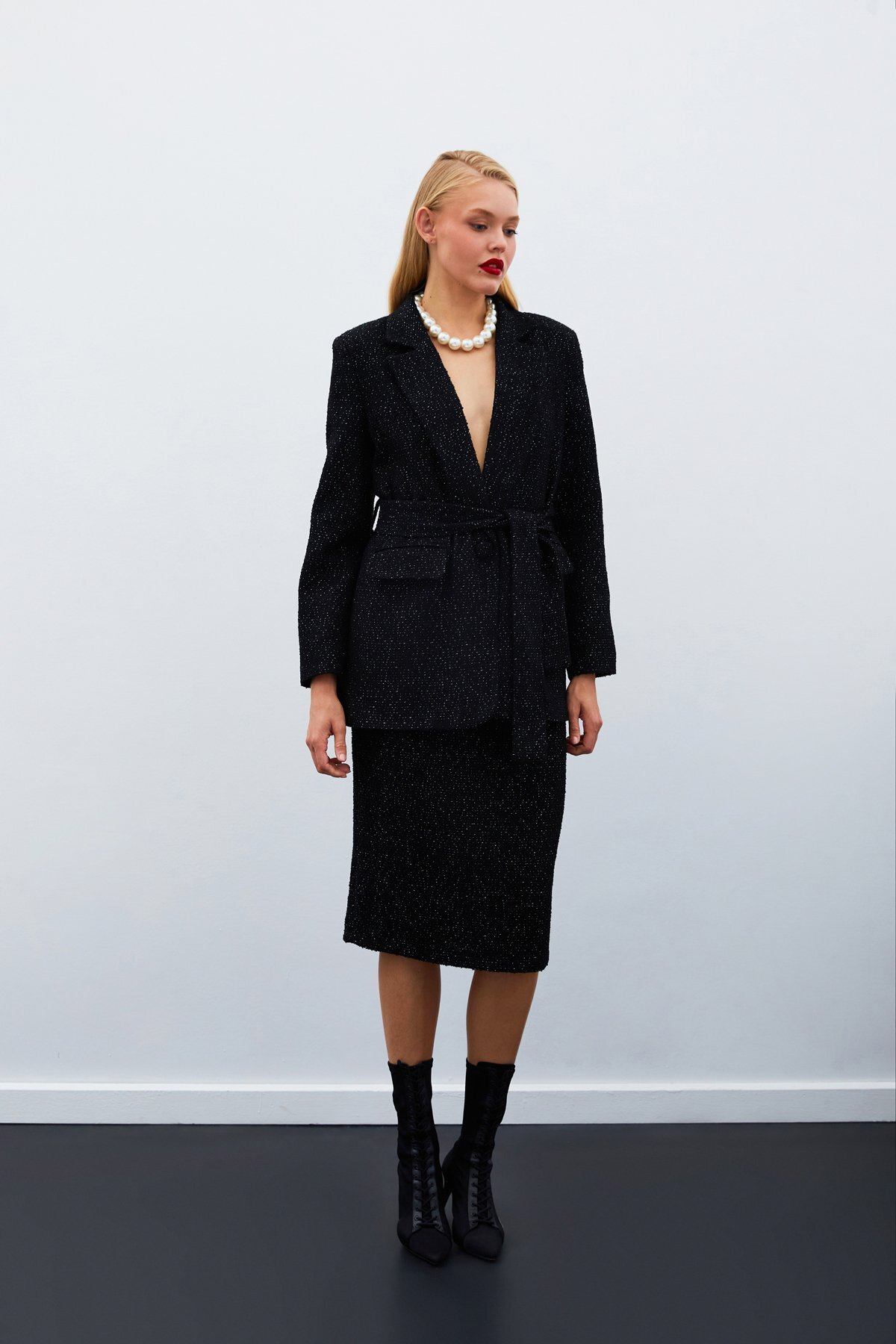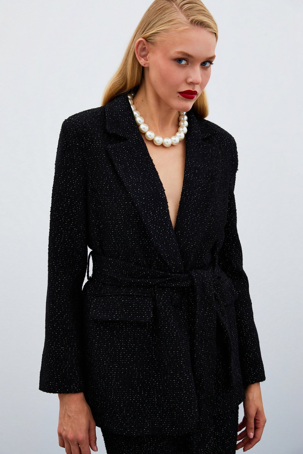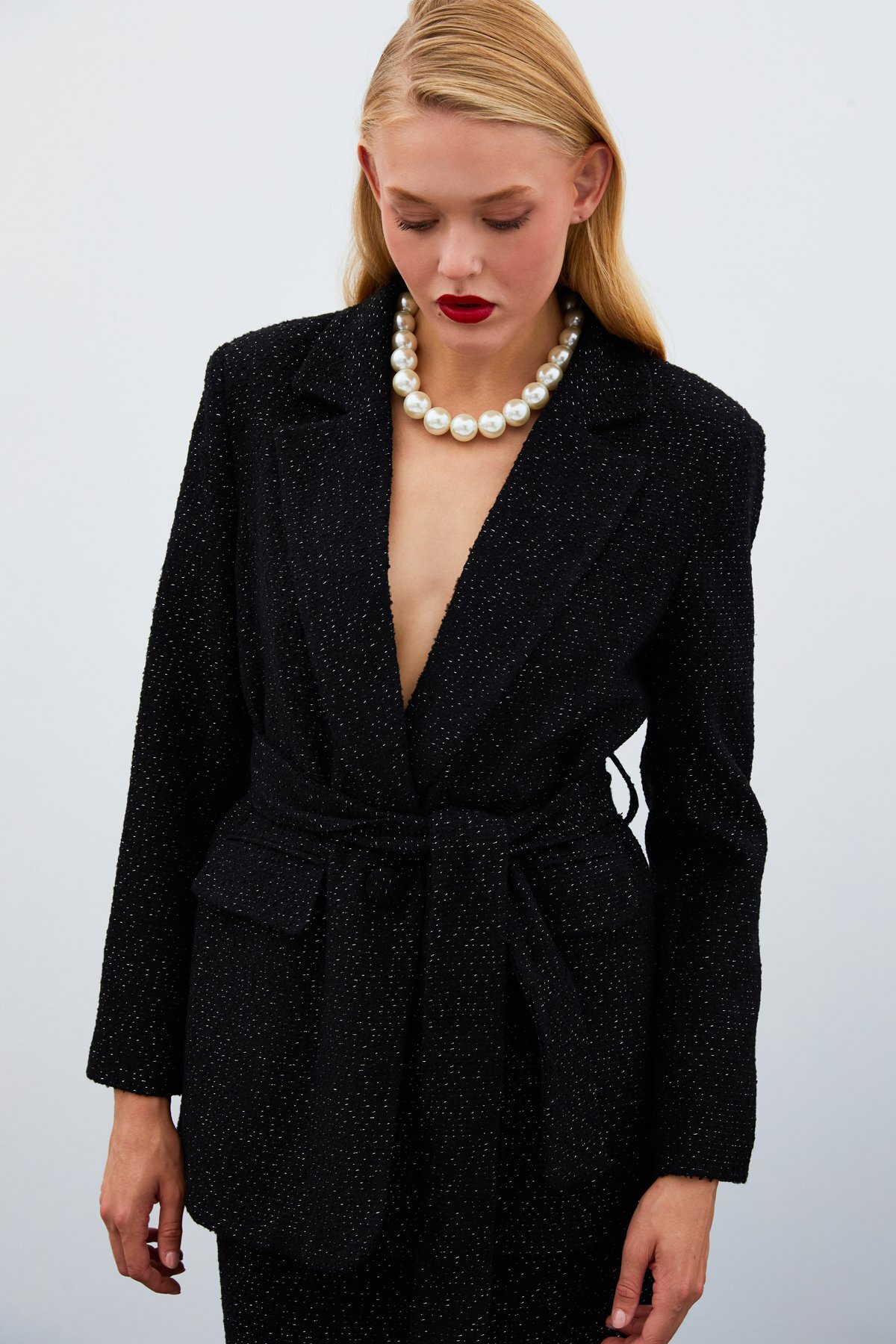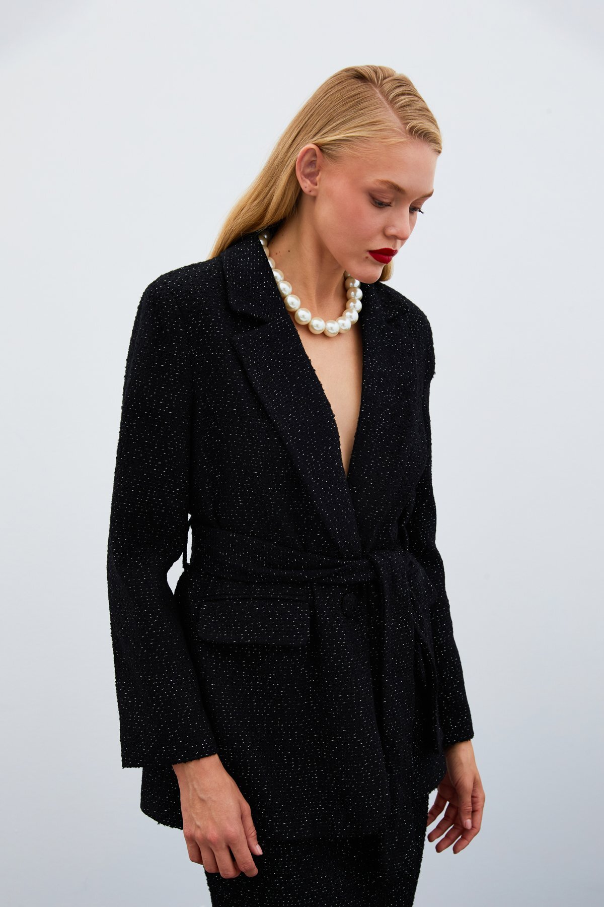کت مشکی کمربند دار با کیفیت عالی و رنگ زیبا و طرح شیک و قیمت باورنکردنی ساخت برند Sateen را از فروشگاه اینترنتی فیزا خریداری کنید.
