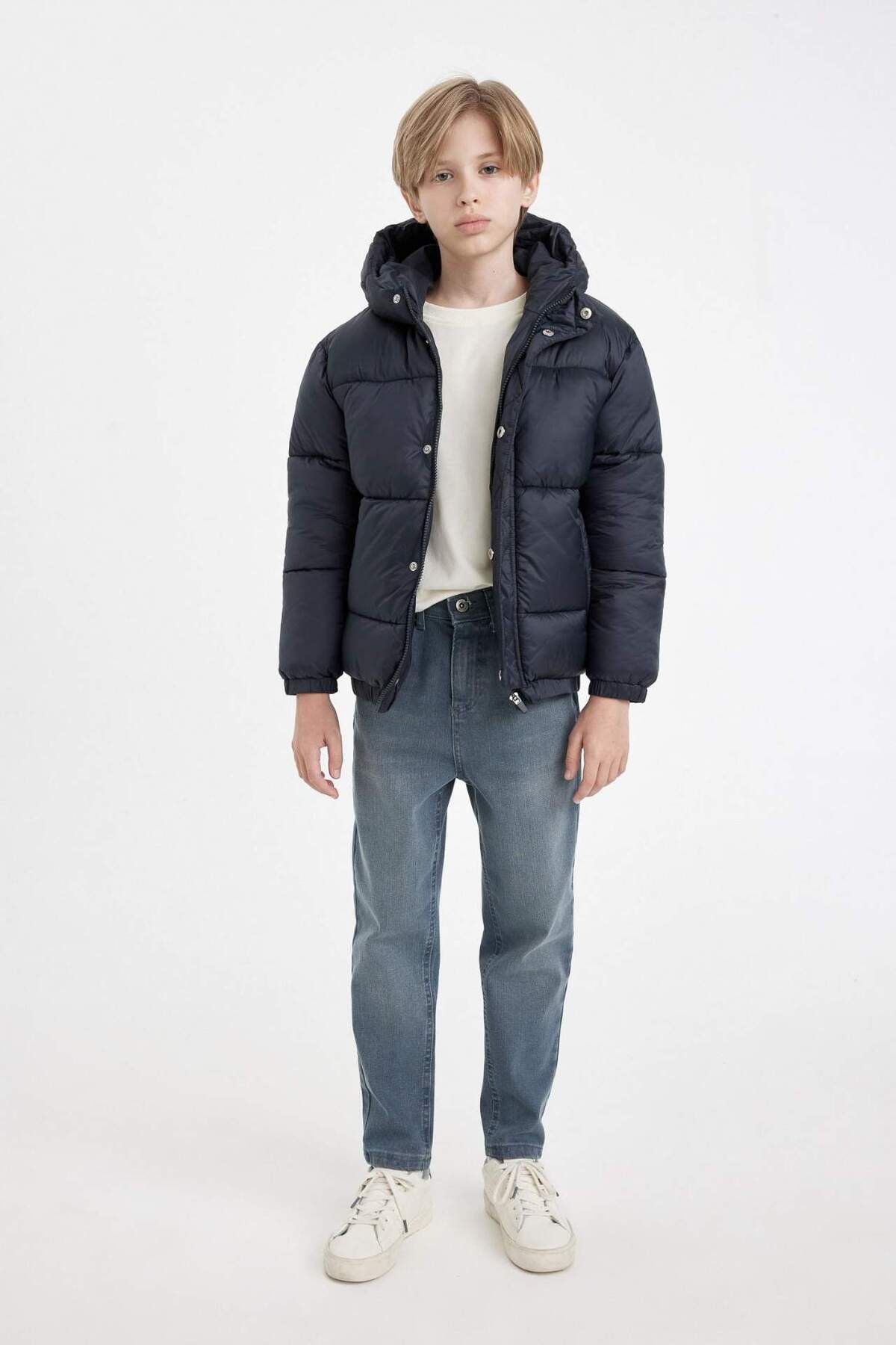 کت پسرانه ضد آب با کلاه و زیپ و دکمهدار C5474A824WN برند Defacto