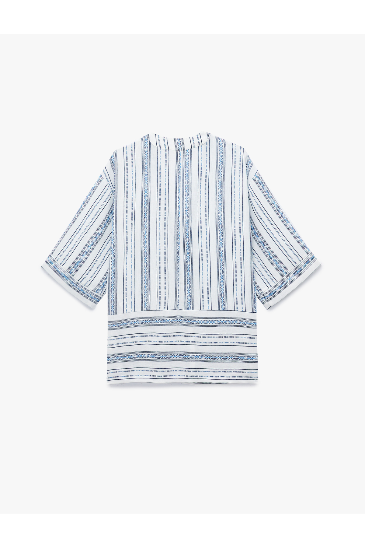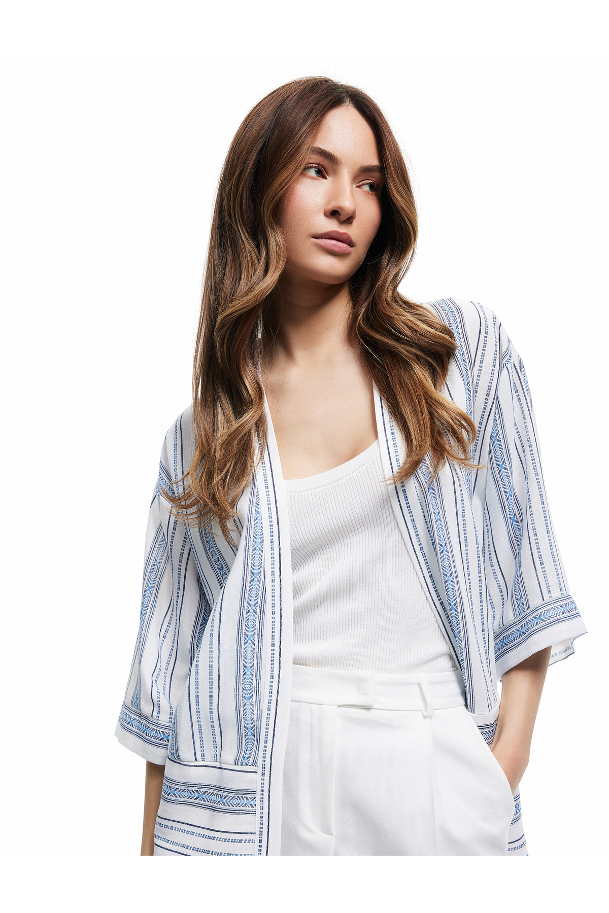 این کت جاکتی ساخته شده از پارچههای باکیفیت و نرم است که حس راحتی و آزادی حرکت را به شما هدیه میدهد. آستینهای گشاد ۳/۴ آن نیز باعث میشود که در روزهای گرم تابستانی یا بهار، از تهویه مناسب برخوردار باشید و در عین حال استایل خاصی را ایجاد کنید. طراحی کیمونو این محصول، به خوبی میتواند روی لباسهای مختلف پوشیده شود و به راستی که این توانایی را دارد که از آن به عنوان یک لایهافزای زیبا در ترکیب خود استفاده کنید.