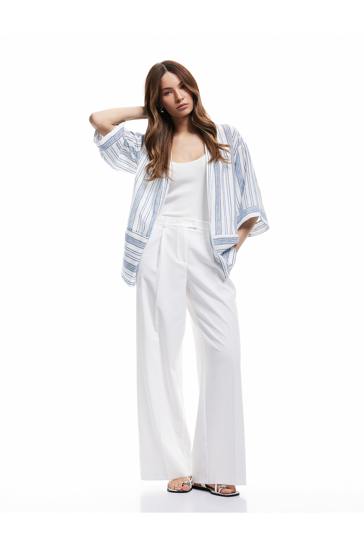 علاوه بر زیبایی و راحتی، این کت جاکت کیمونو با آستینهای گشاد قابلیت تطبیقپذیری بالایی دارد. شما میتوانید آن را با شلوار جین، دامن یا حتی پیراهنهای شب بپوشید و هر بار استایلی جدید و متفاوت را تجربه کنید. این ویژگی باعث میشود که این محصول به گزینهای ایدهآل برای مهمانیها، دورهمیها یا حتی استفاده روزمره تبدیل شود.