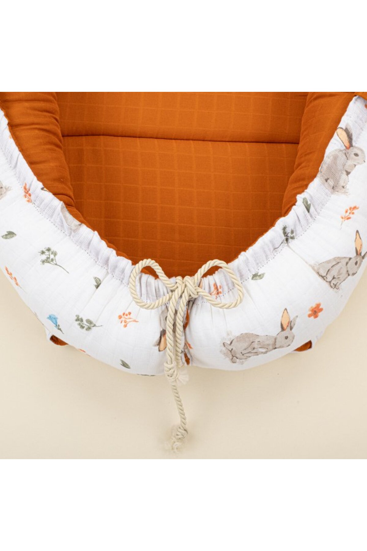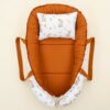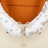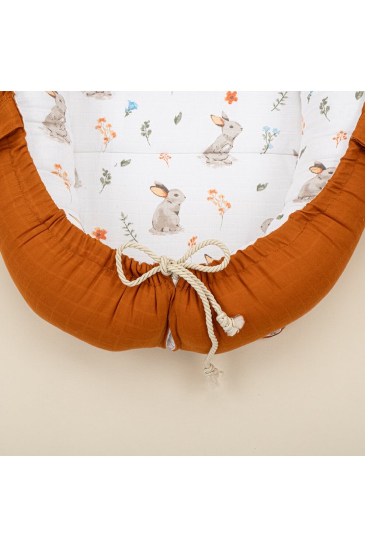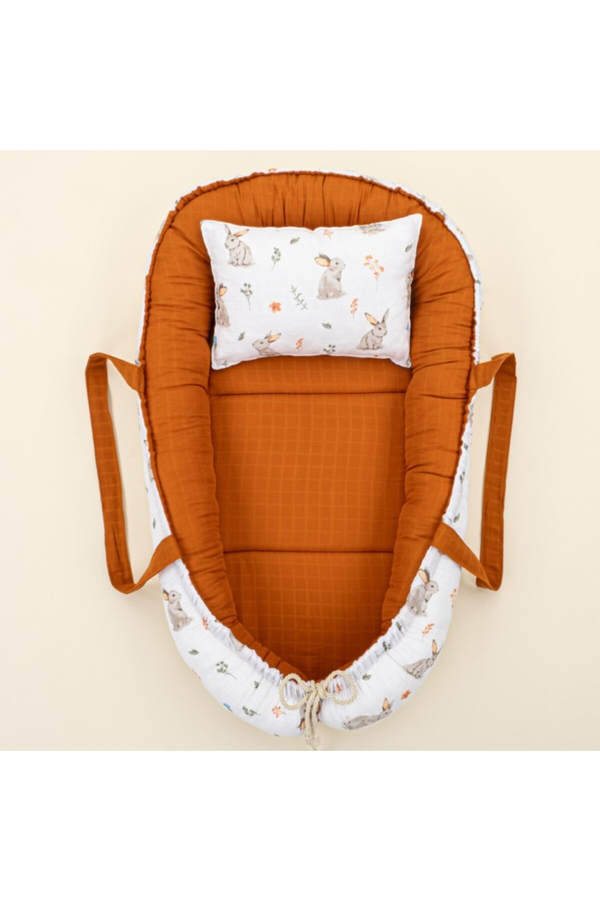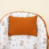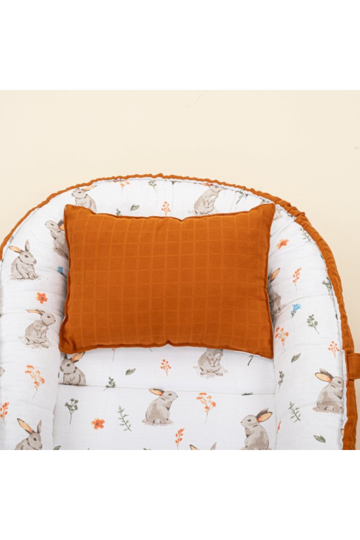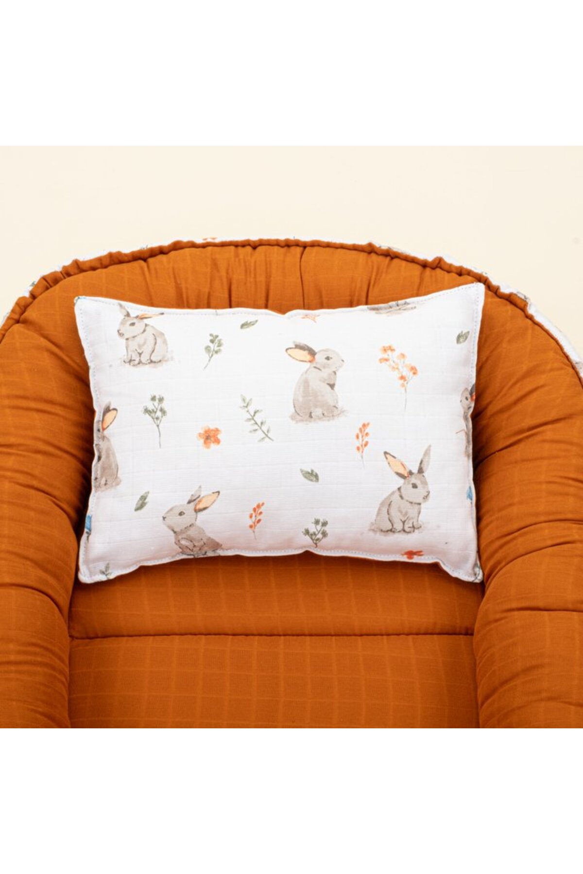 بالش دو رو این محصول بهطور خاص طراحی شده تا هماهنگی لازم با تخت خواب را داشته باشد. یک سمت آن با رنگ کرب زرد و سمت دیگر با طراحی زیبا از خرگوش قهوهای ارائه شده است. این ویژگی باعث میشود والدین بتوانند با تغییر سمت بالش، تنوعی تازه را به محیط خواب نوزاد اضافه کنند. این بالش بهطور ویژه برای حمایت از گردن و سر نوزاد طراحی شده که به بهبود خواب و کاهش ناراحتیهای جسمی کمک میکند.