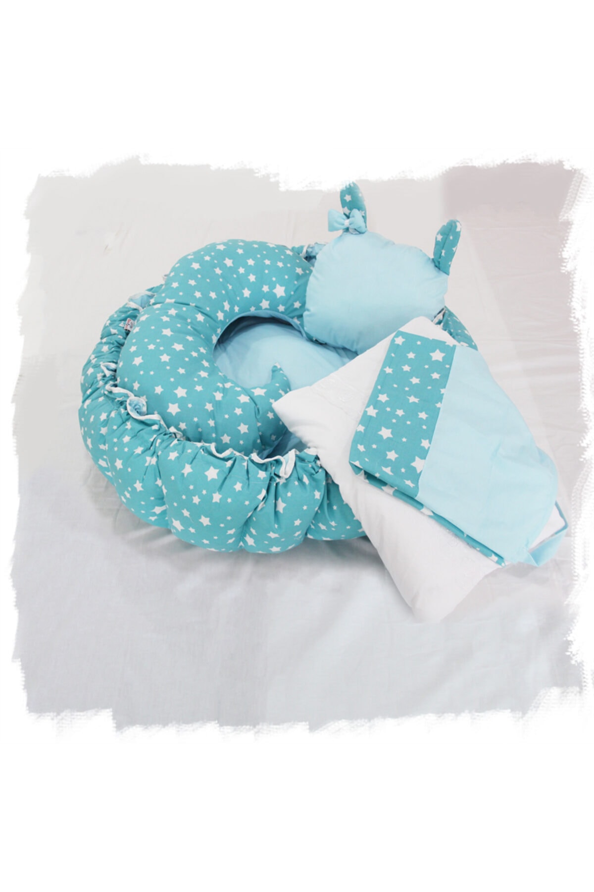 بالش شیردهی این مجموعه نیز به گونهای طراحی شده است که به مادران در هنگام شیر دادن به نوزاد کمک کند. این بالش با شکل منحنی خود، موجب راحتی بیشتر مادر و نوزاد میشود و از بروز دردهای ناحیه کمر و گردن در مادر جلوگیری میکند. مواد نرم و تنفسپذیر این بالش، حس راحتی و آرامش را در طول شیردهی فراهم میآورد.