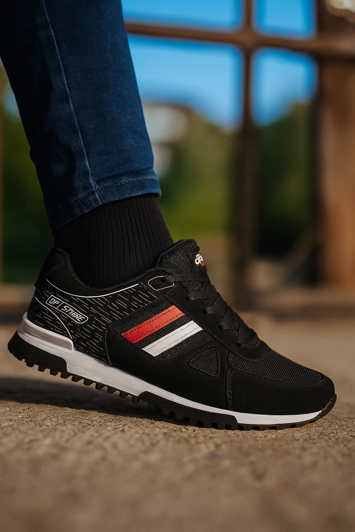 کفش اسپرت اسنیکر راهراه قرمز مشکی مردانه با کیفیت عالی و رنگ زیبا و طرح شیک و قیمت باورنکردنی ساخت برند Giyyin را از فروشگاه اینترنتی فیزا خریداری کنید.