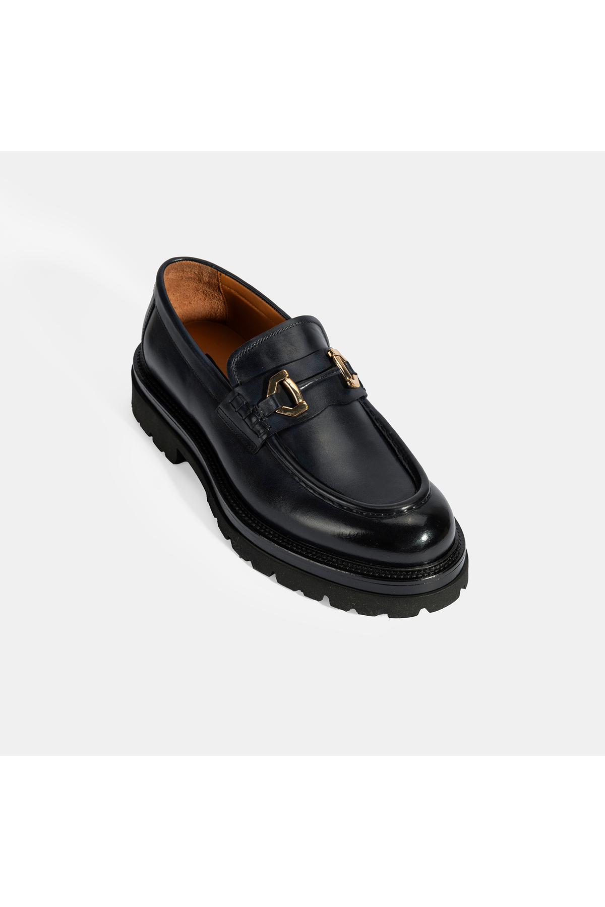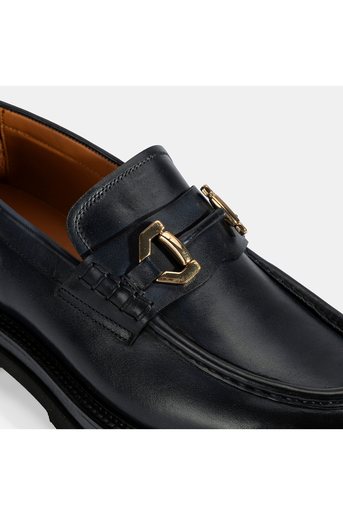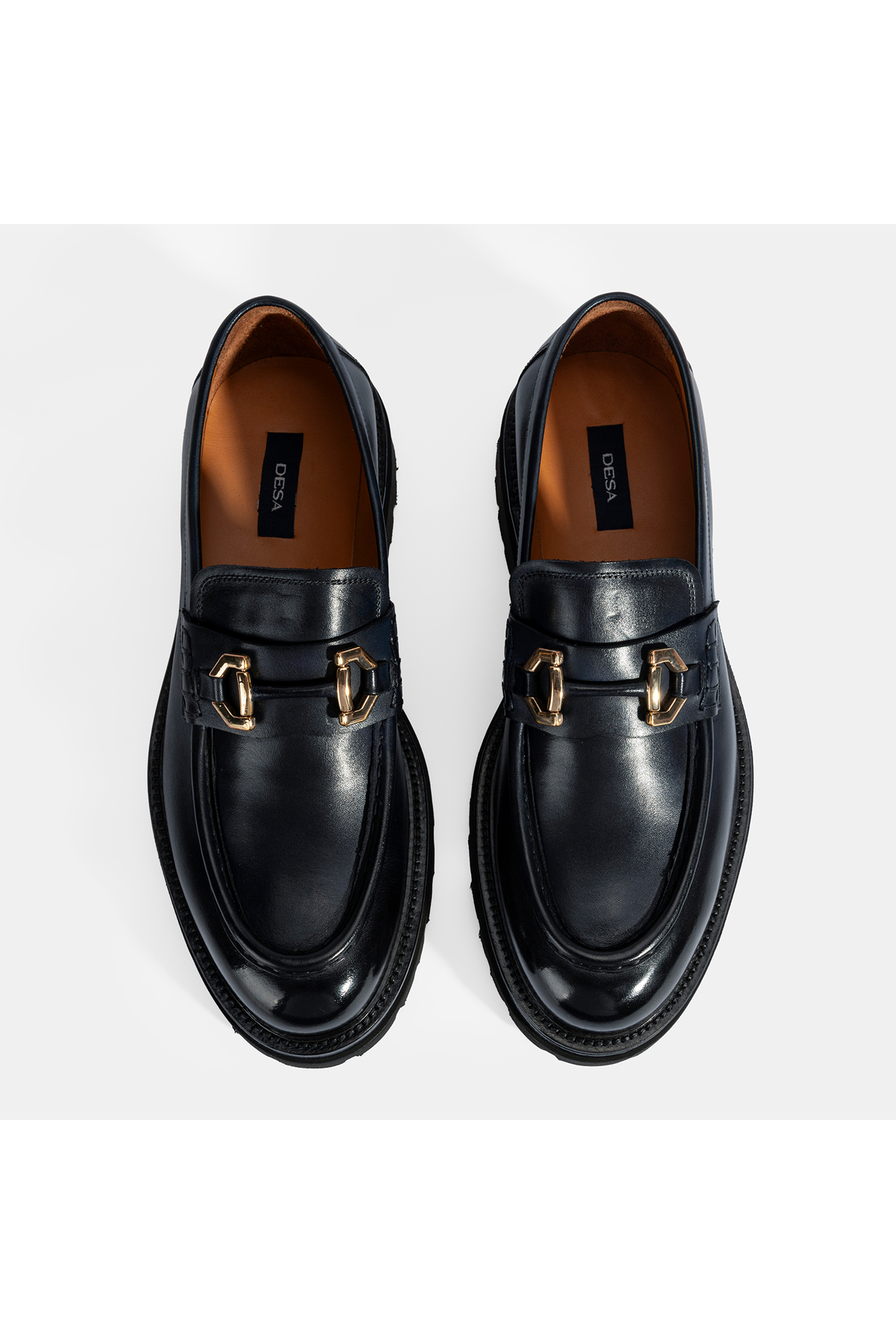 کفش راحتی چرمی مردانه با جزئیات سگک فلزی آبی تیره برند Desa