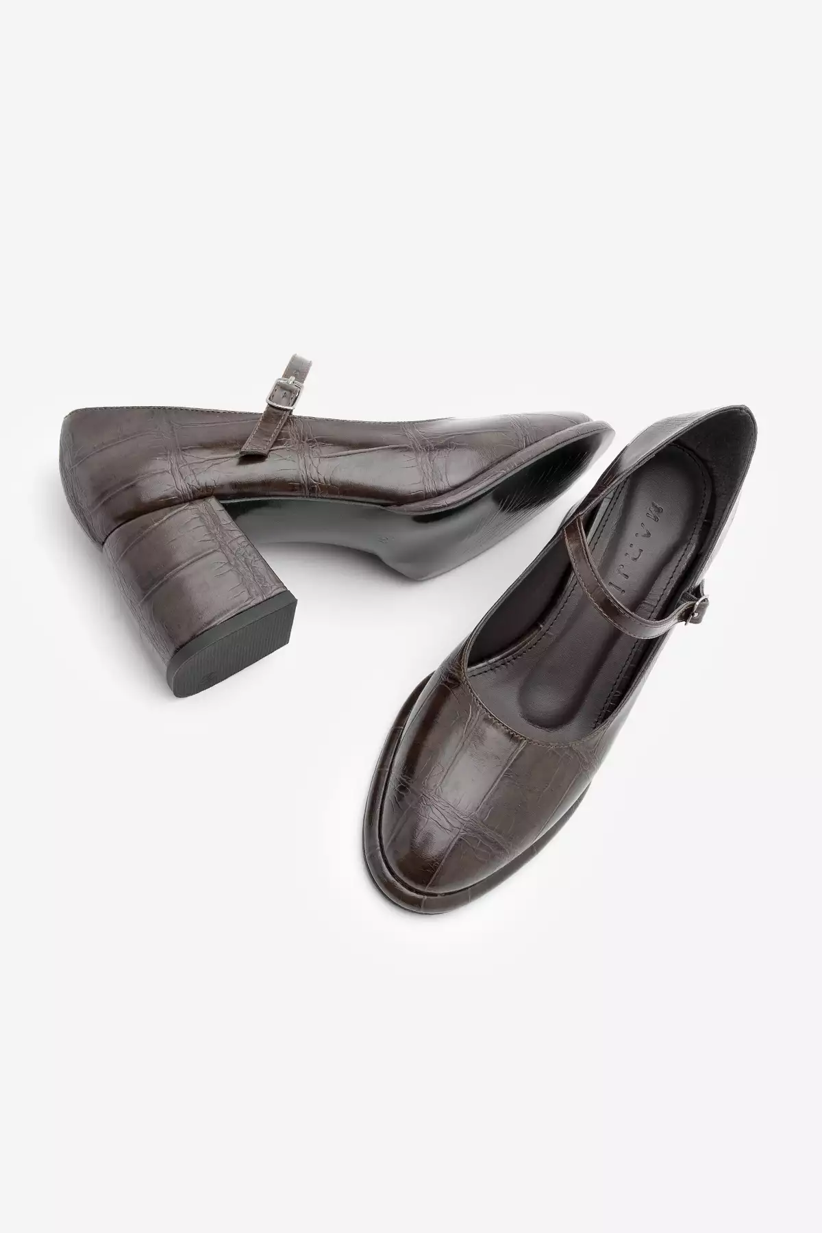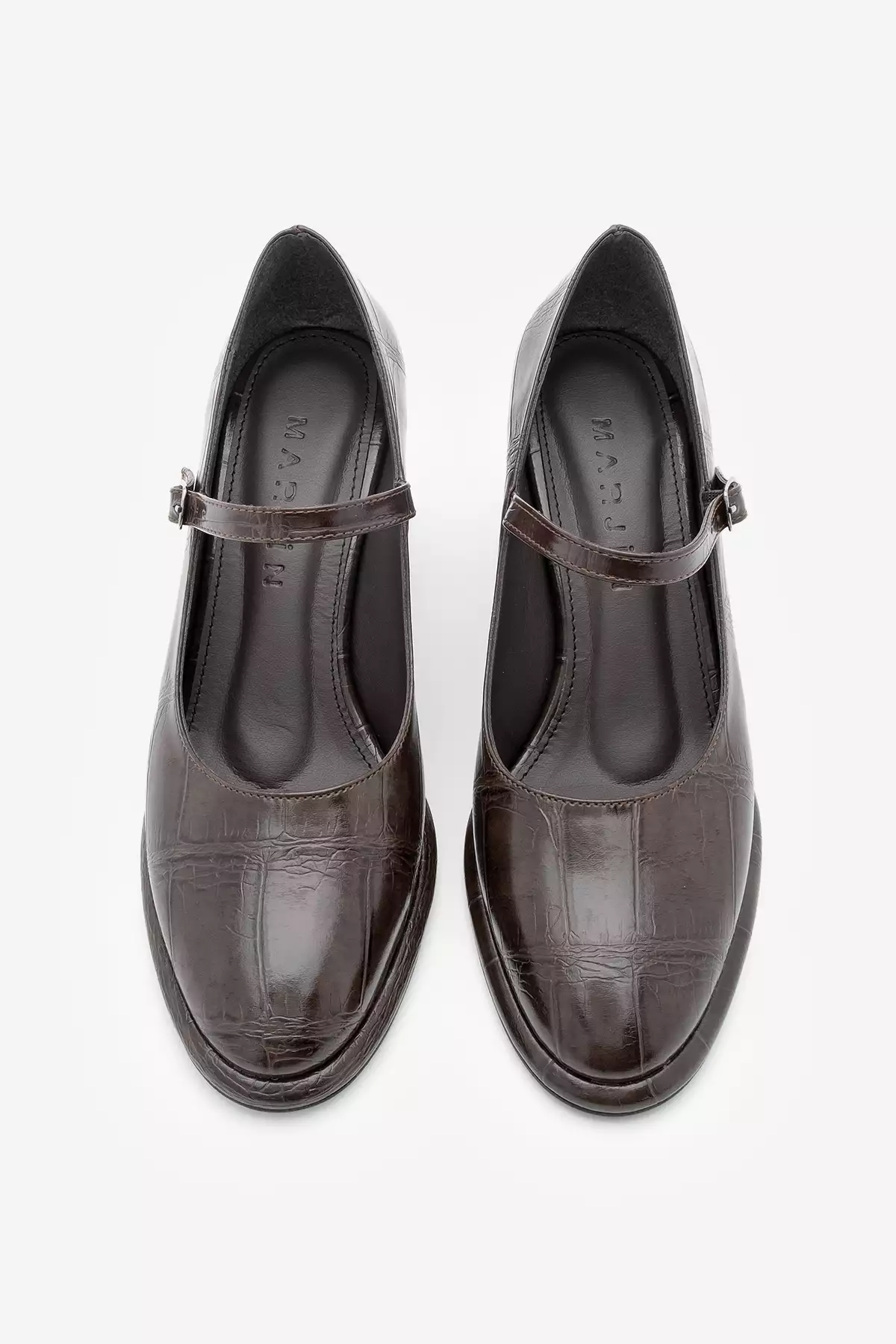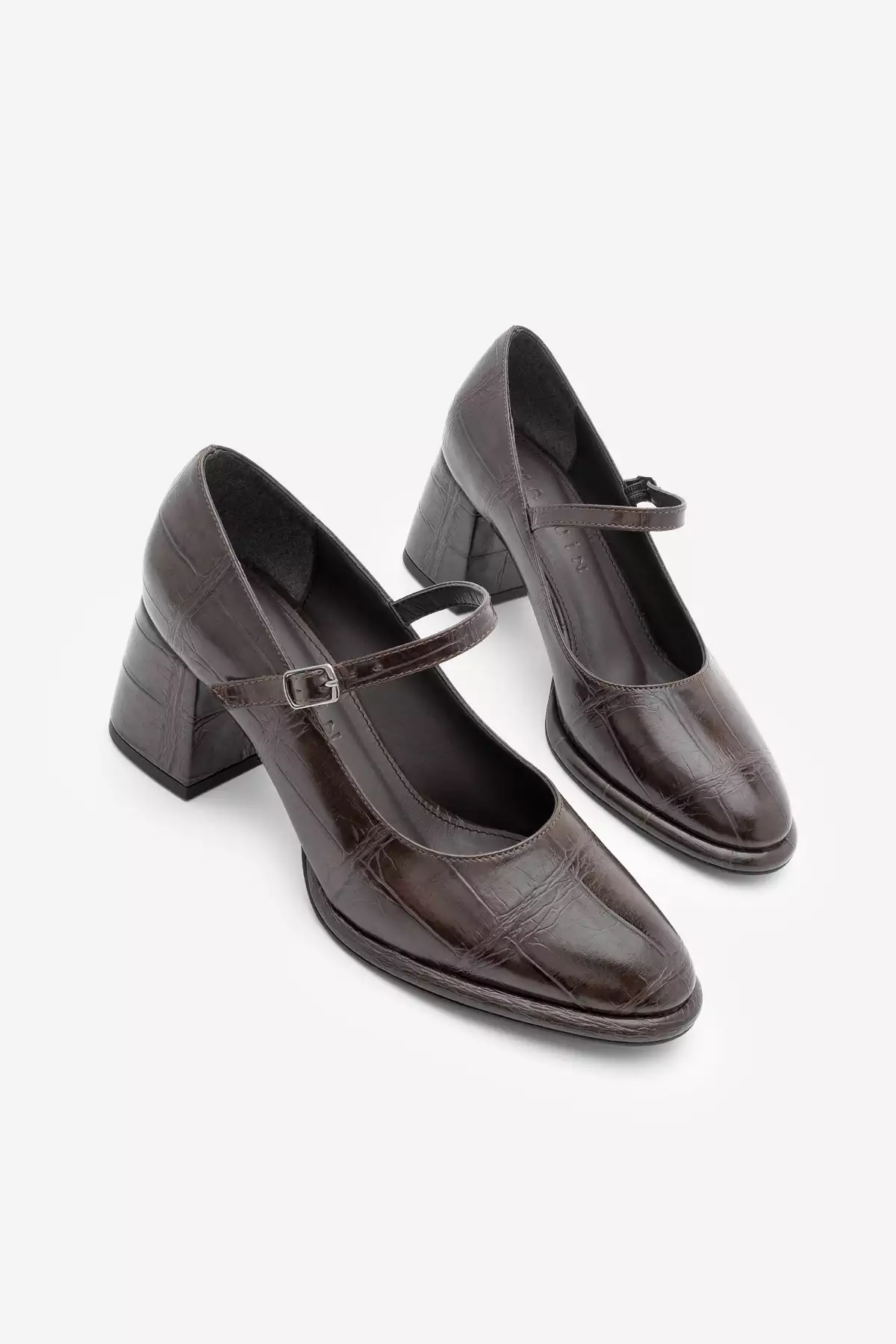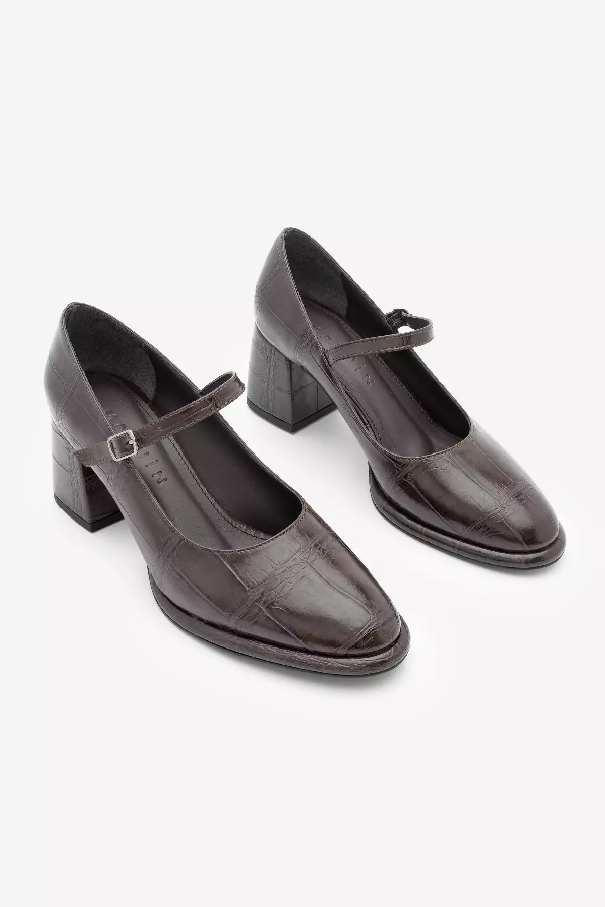 کفش روزمره زنانه با پاشنه ضخیم و بند نازک ویکاس قهوهای کروکویی برند Marjin