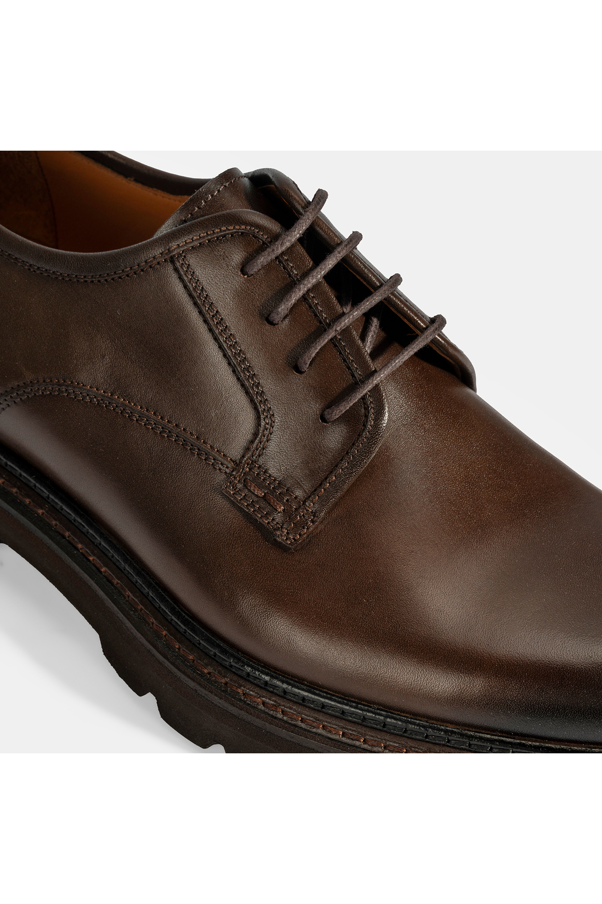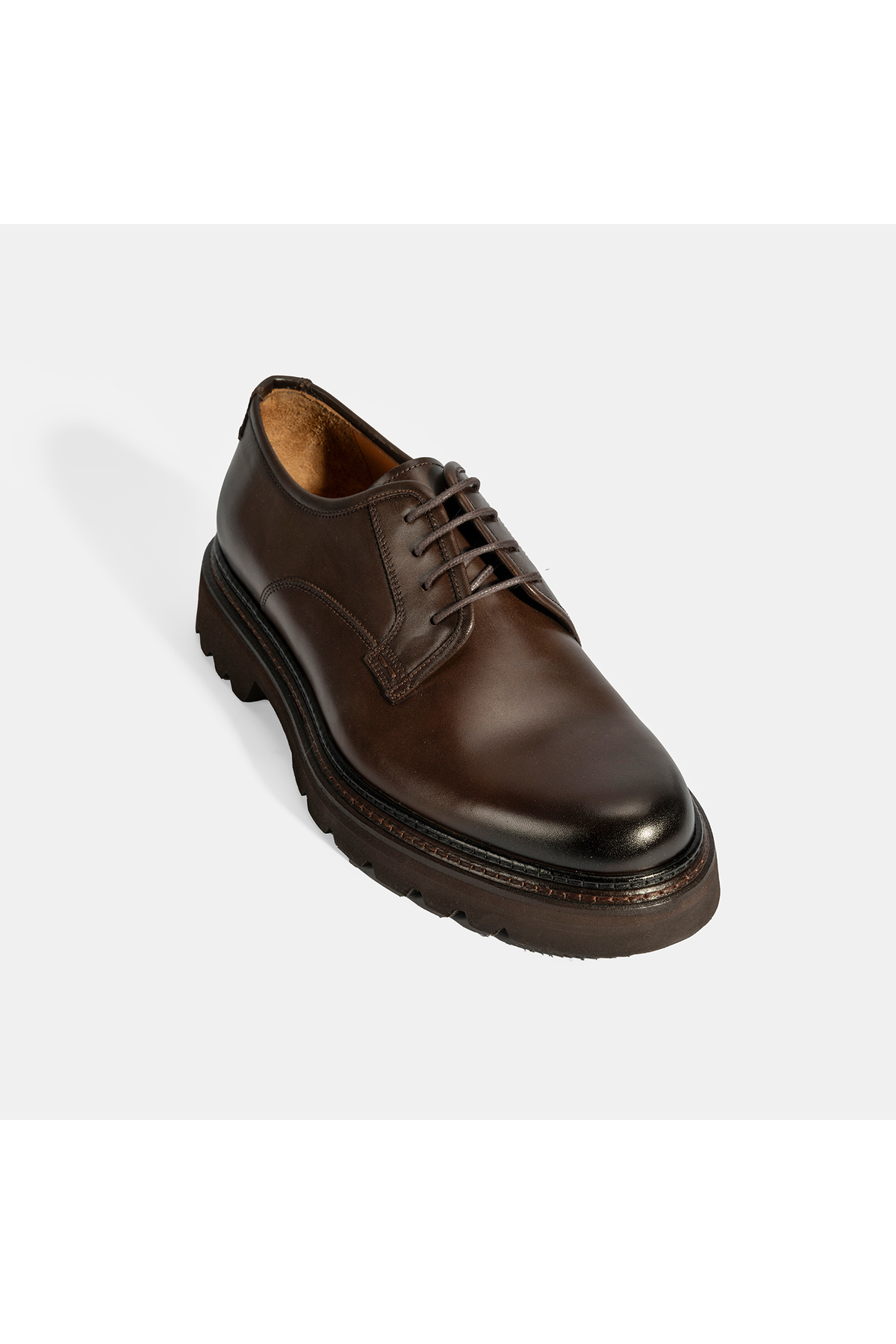 کفش روزمره مردانه چرم قهوهای با بند برند Desa