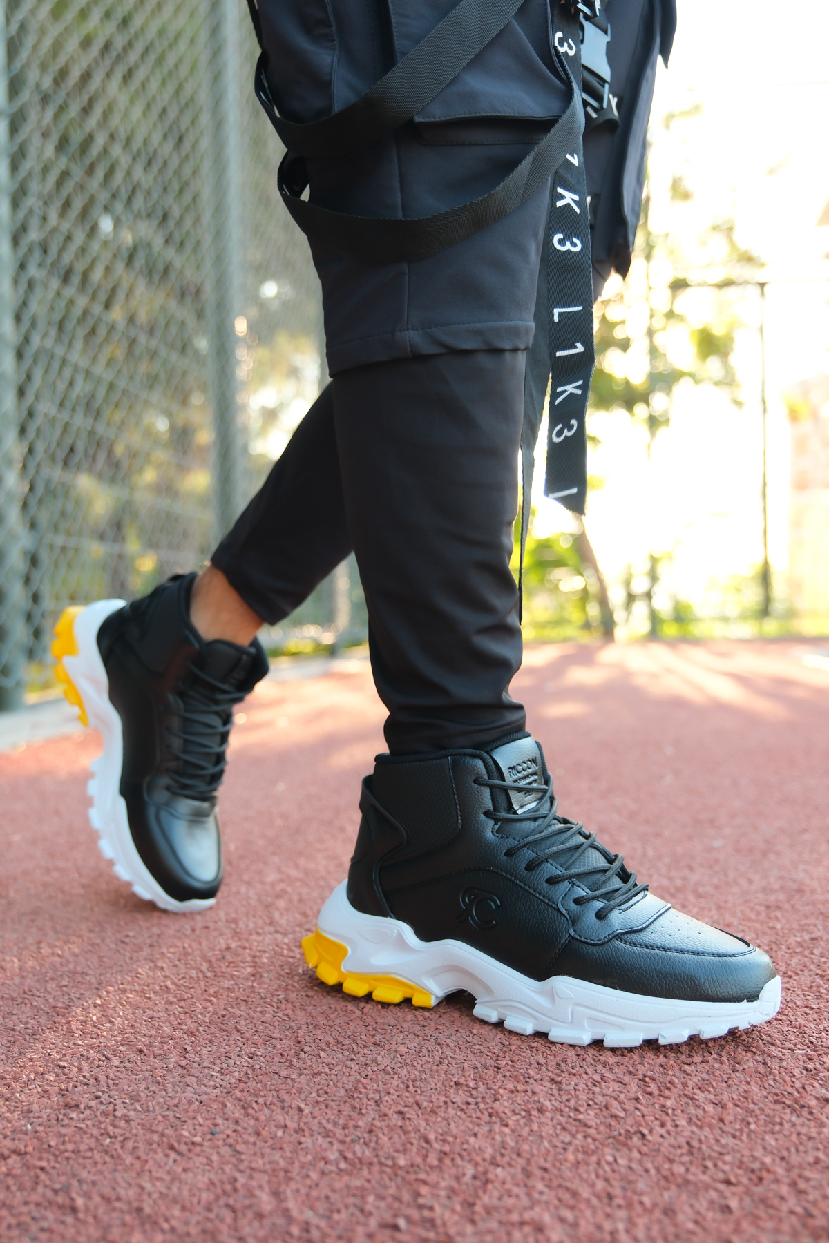 طراحی مدرن کفش ورزشی Riccon با رنگبندی مشکی، سفید و زرد، باعث میشود این محصول هم با استایلهای مختلف هماهنگ شود و هم به عنوان یک کفش روزمره قابل استفاده باشد.