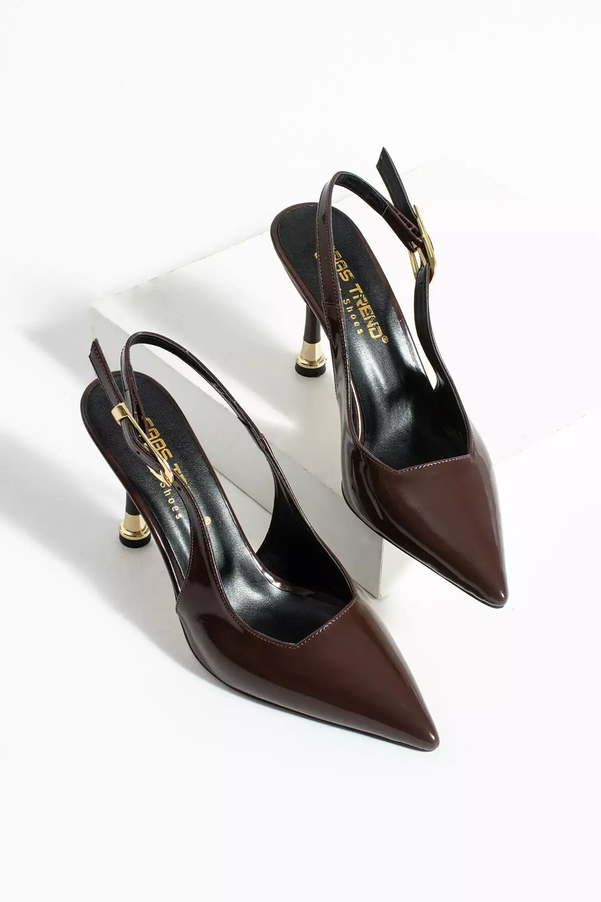کفش پاشنه بلند زنانه قهوهای با طراحی خاص و زیبا، به شما این امکان را میدهد که در هر مراسمی درخشان باشید. این کفش با پاشنهای به ارتفاع 8 سانتیمتر، از جنس چرم لاکی تولید شده است که زیبایی و استایل شما را دوچندان میکند.