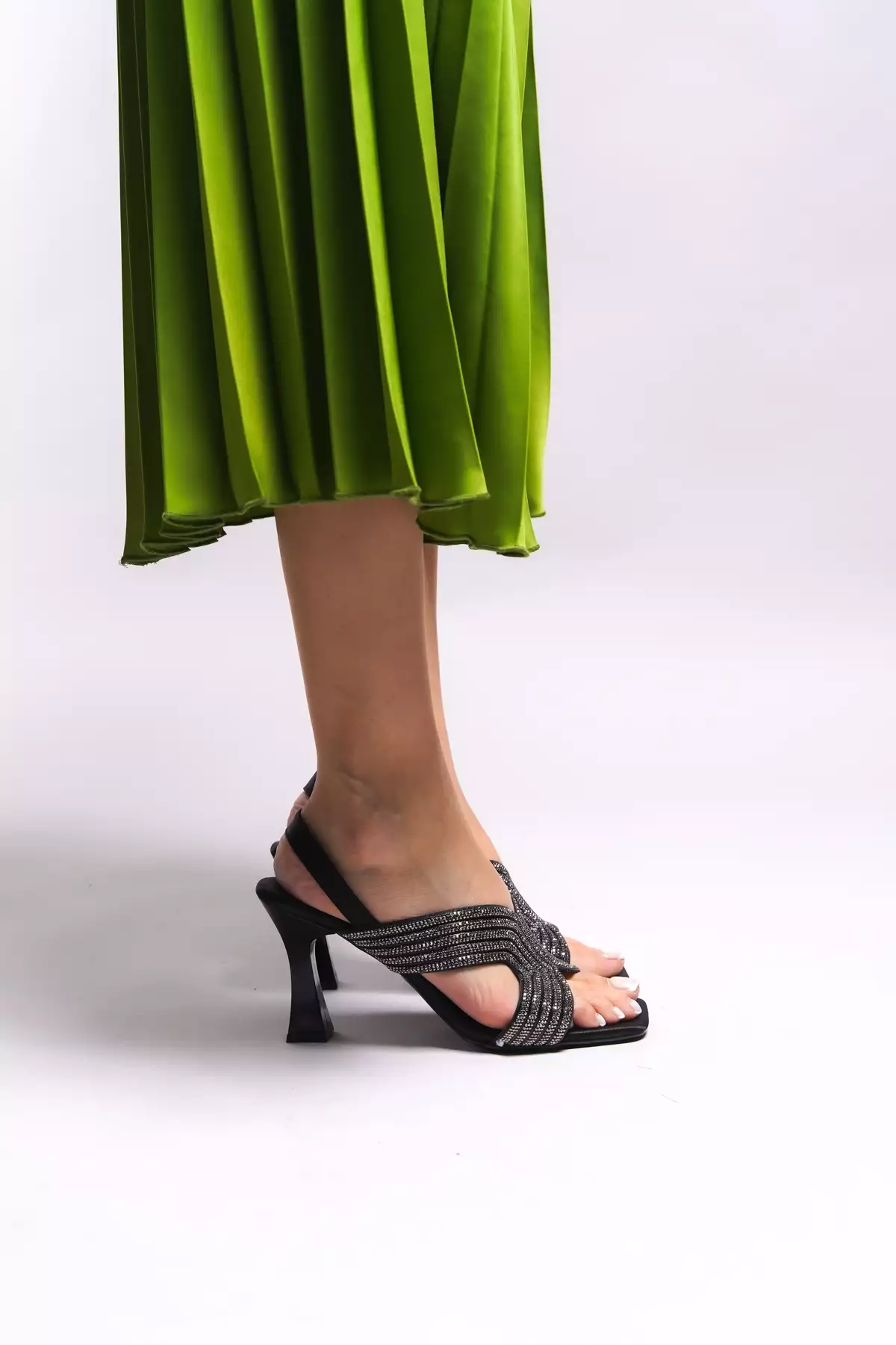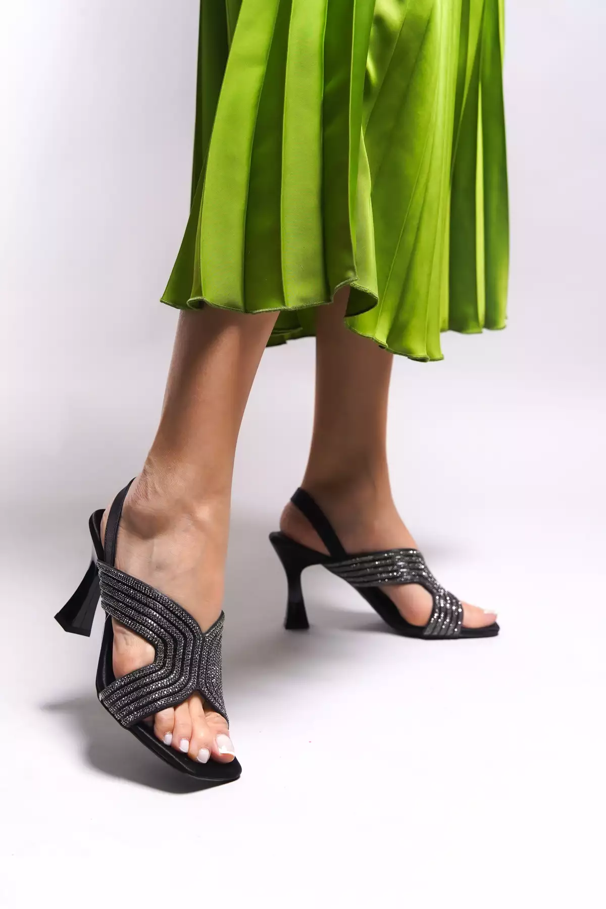کفش پاشنه بلند زنانه گلوان 0012173 مشکی ساتن برند Riccon