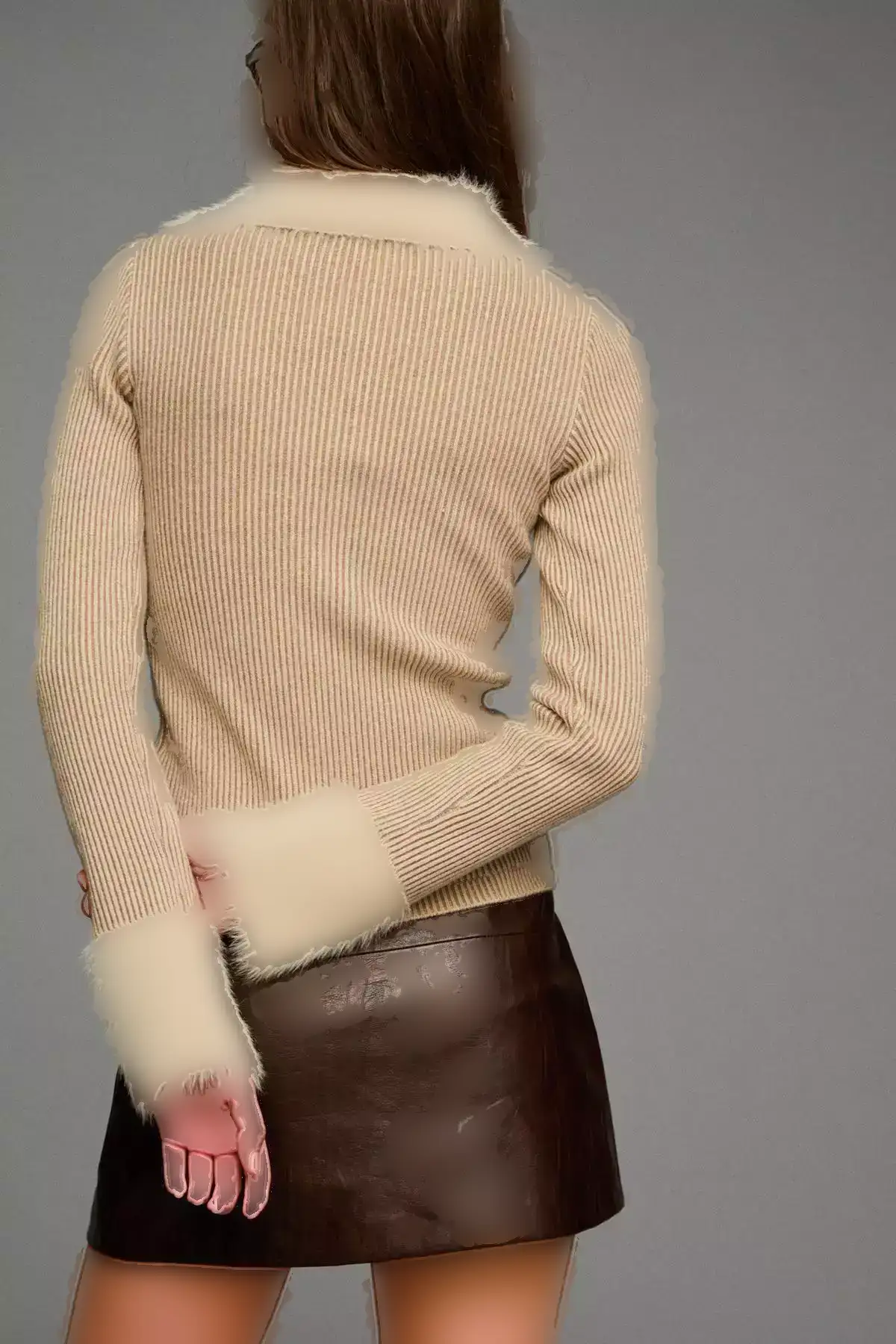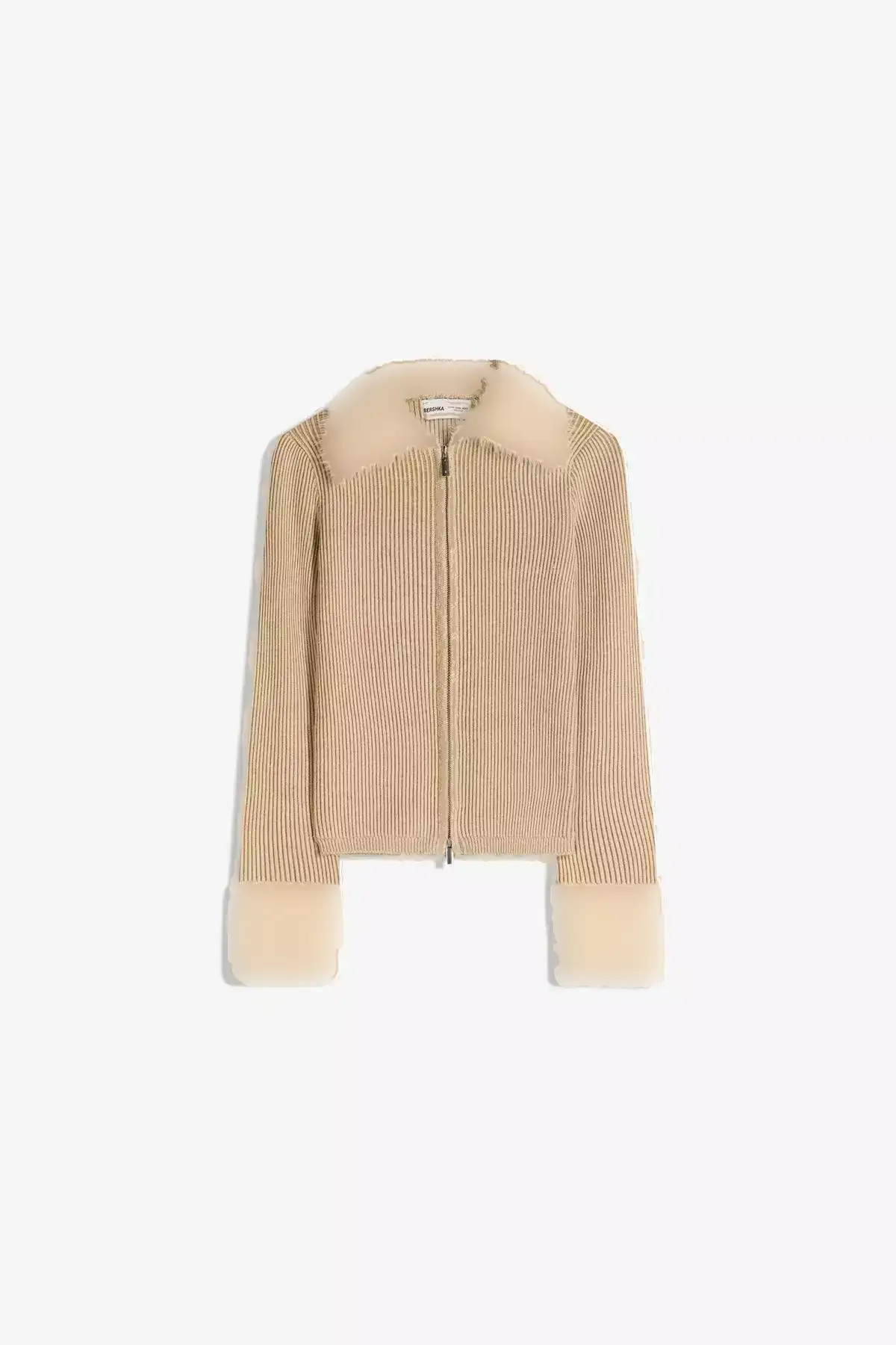 کُت پشمی دارای یقه خز و زیپ برند Bershka - 992656652