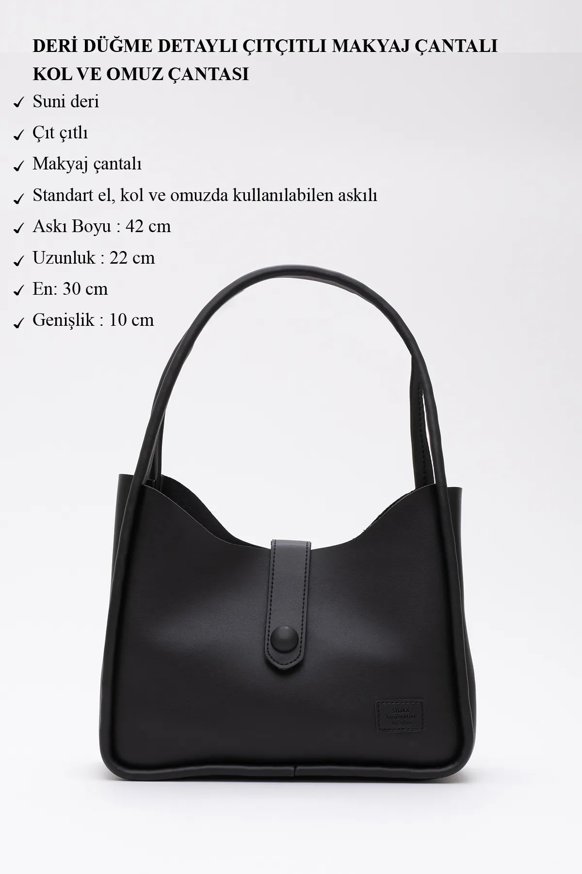 جزئیات دکمه چرمی که در این کیف به کار رفته، جلوهای خاص و متفاوت به محصول میبخشد. این دکمهها نه تنها زیبایی کیف را افزایش میدهند، بلکه به دوام و پایداری آن نیز کمک میکنند. با توجه به طراحی مدرن و شیک این کیف، میتوانید آن را با انواع لباسها و استایلهای مختلف ترکیب کنید، چه برای یک روز اداری و چه برای یک مهمانی رسمی.