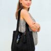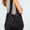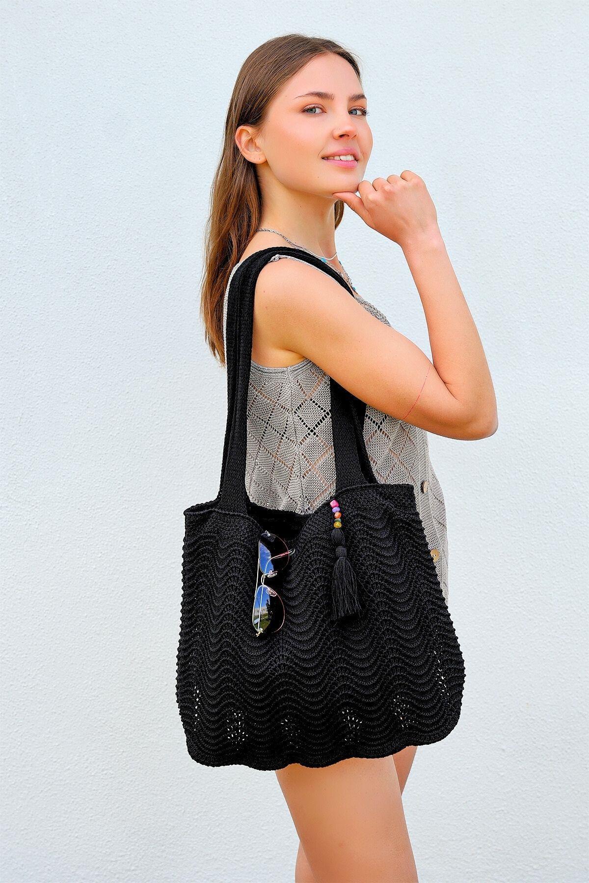 کیف روزمره زنانه با آستر و بند، مشکی، مناسب ساحل. کد 1753690983