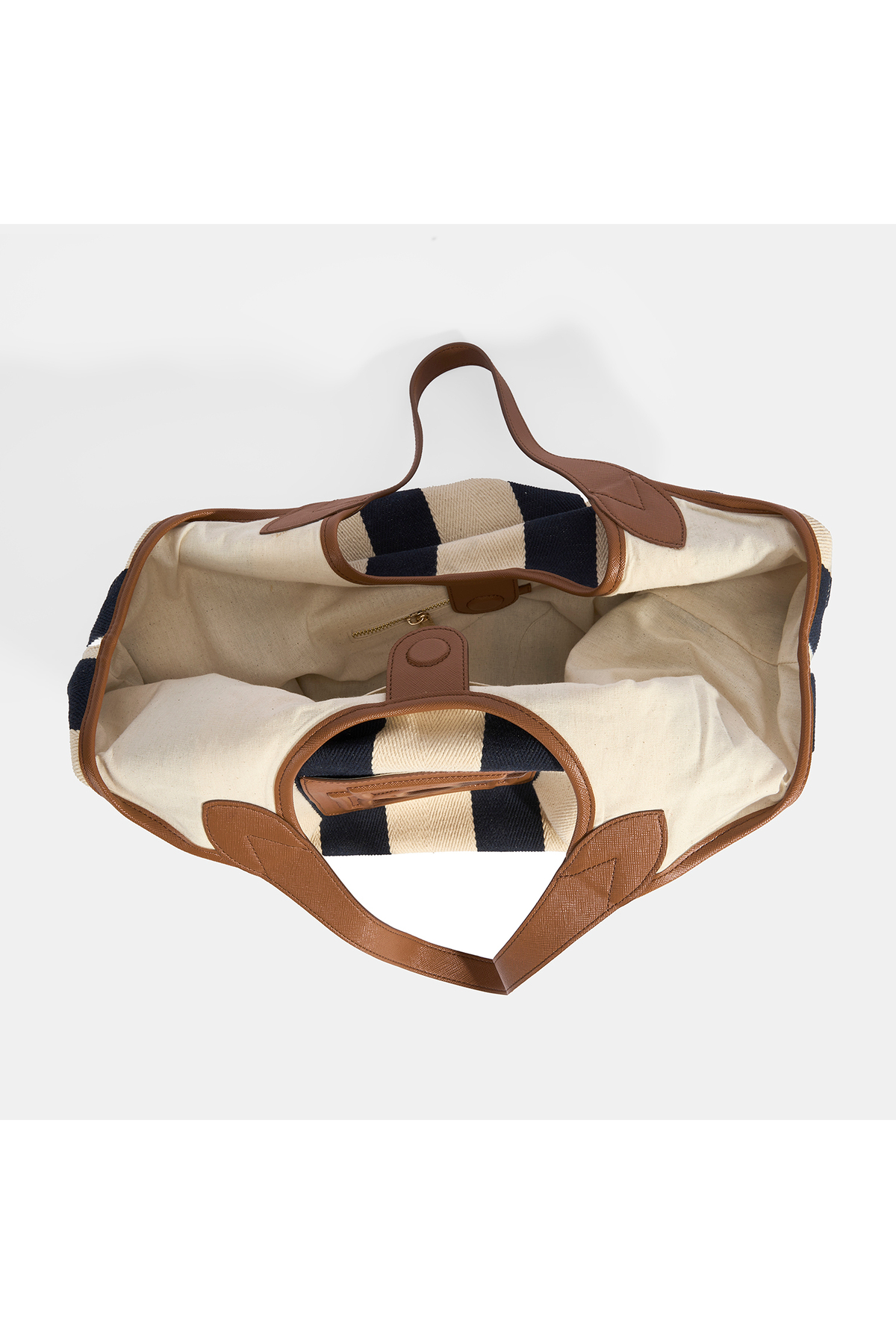 یکی از ویژگیهای بارز این کیف دوشی، طرح مونوگرام آن است که به خوبی حس لوکس بودن را منتقل میکند. خطوط آبی تیره، به زیبایی روی پسزمینه کیف قرار گرفته و جلوهای استثنایی ایجاد میکند. این طراحی علاوه بر زیبایی، قابلیت شخصیسازی را نیز به ارمغان میآورد و میتواند نشاندهنده سلیقه خاص و منحصر به فرد فرد استفادهکننده باشد.