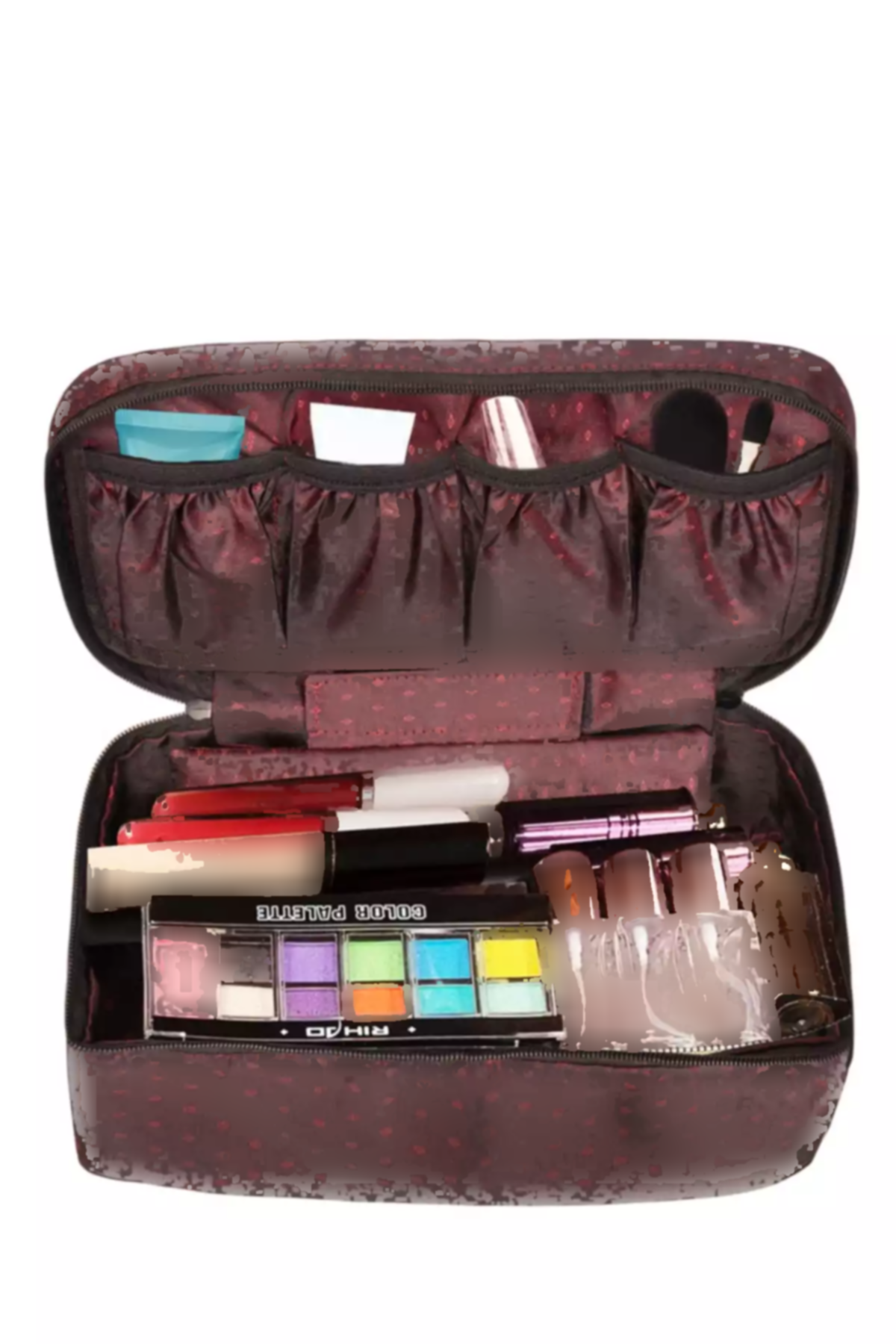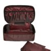 جنس این کیف از مواد باکیفیت و بادوام ساخته شده است که علاوه بر زیبایی، عمر طولانی نیز دارد. رنگ bordo (قرمز تیره) به آن ظاهری مجلسی و جذاب میبخشد و میتواند به عنوان یک اکسسوری شیک در کیف یا چمدان شما قرار گیرد. طراحی داخلی کیف به گونهای است که به شما امکان میدهد براشها و لوازم آرایشی را به شکلی منظم و در دسترس داشته باشید.
