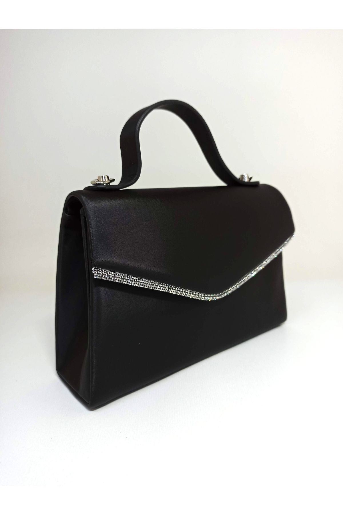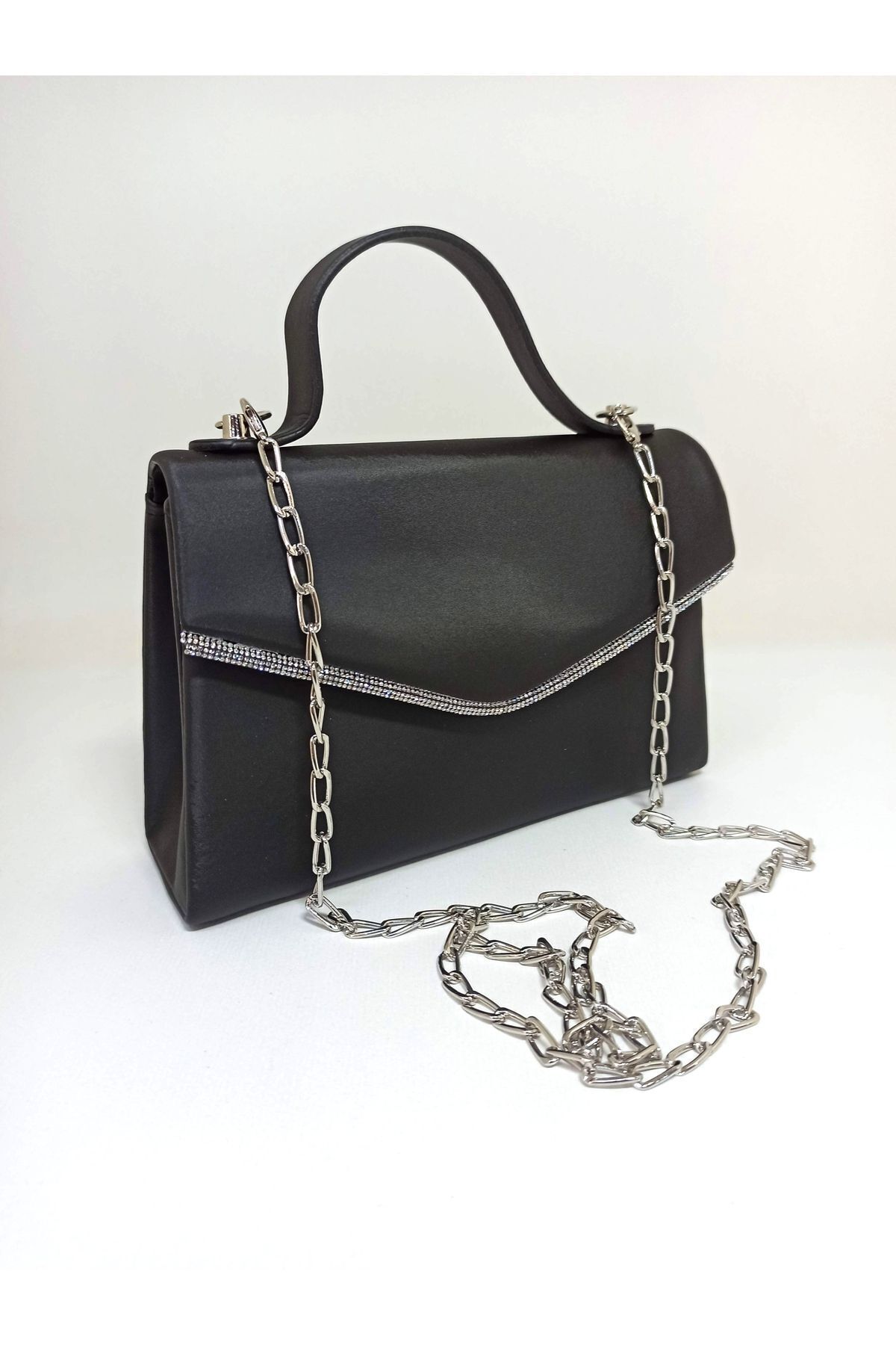 کیف مجلسی زنانه مشکی ساتن با تزئینات سنگ نقرهای نهتنها از نظر زیبایی، بلکه از نظر اندازه و کارایی نیز بسیار مناسب است. این کیف به اندازهای طراحی شده که میتواند به راحتی لوازمضروری مانند گوشی موبایل، کیف پول، و لوازم آرایش را در خود جای دهد. همچنین، طراحی آن به گونهای است که میتوانید به راحتی آن را در دست بگیرید یا بر روی دوش خود بندازید.