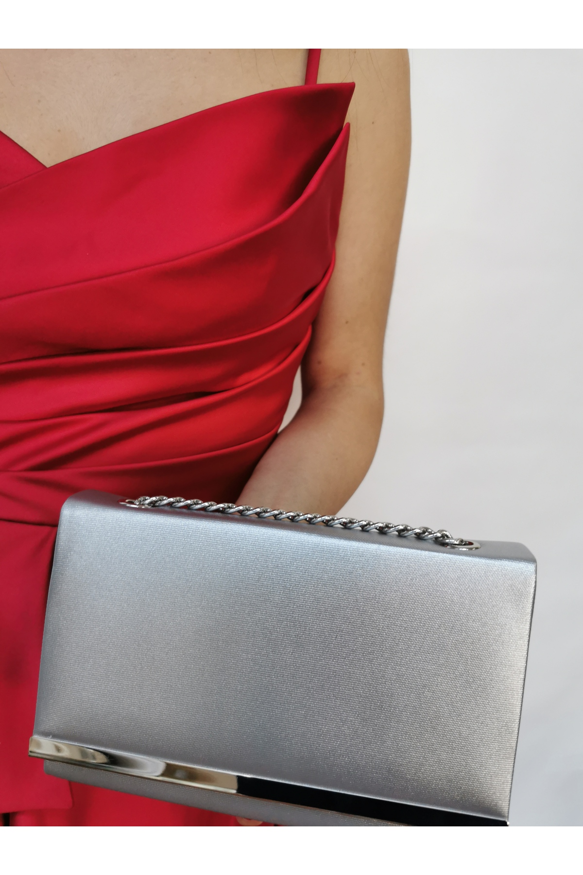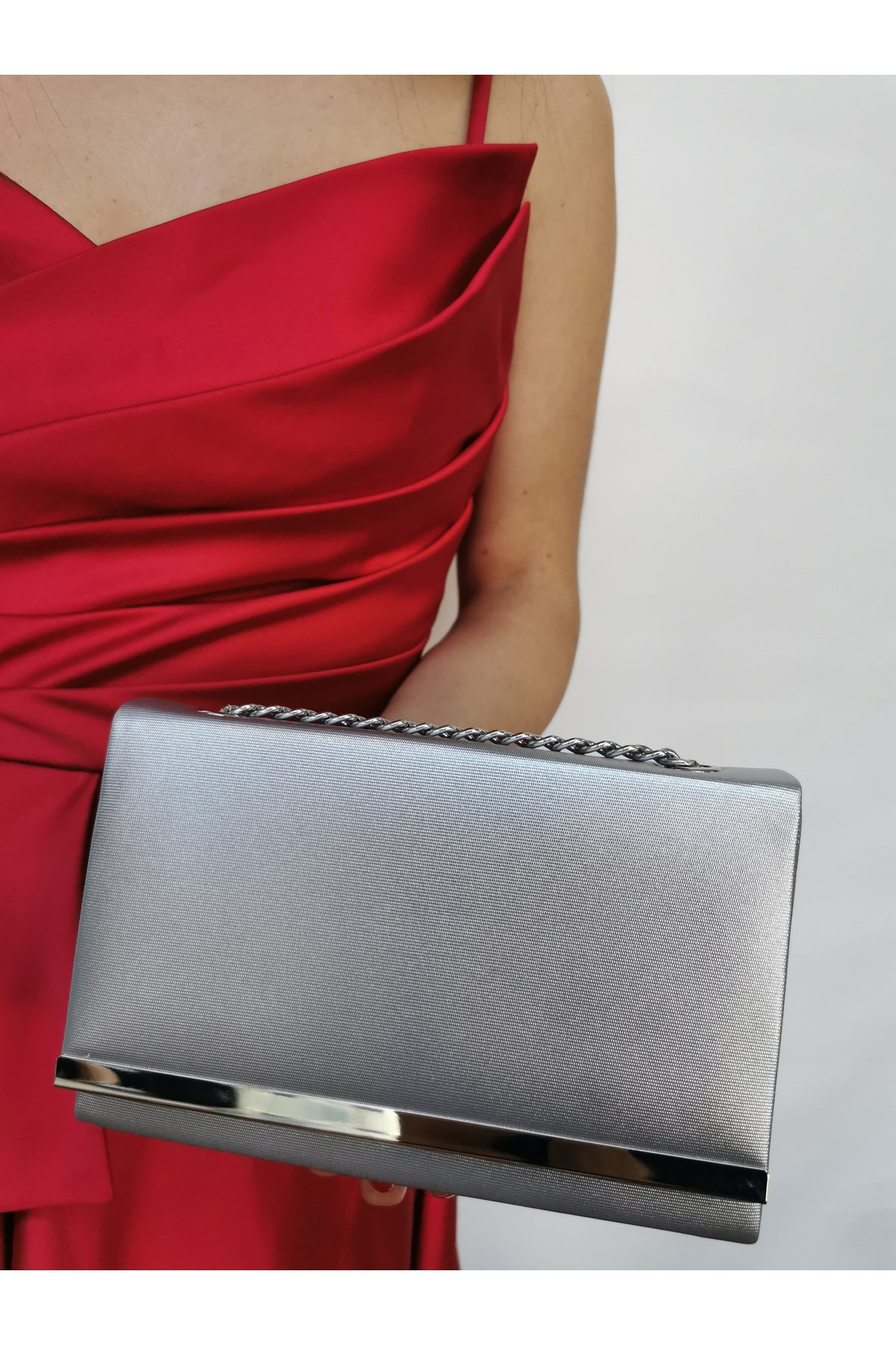 کیف دستی زنانه ابریشمی نقره‌ای مدل پورتفوی کد 1758408065