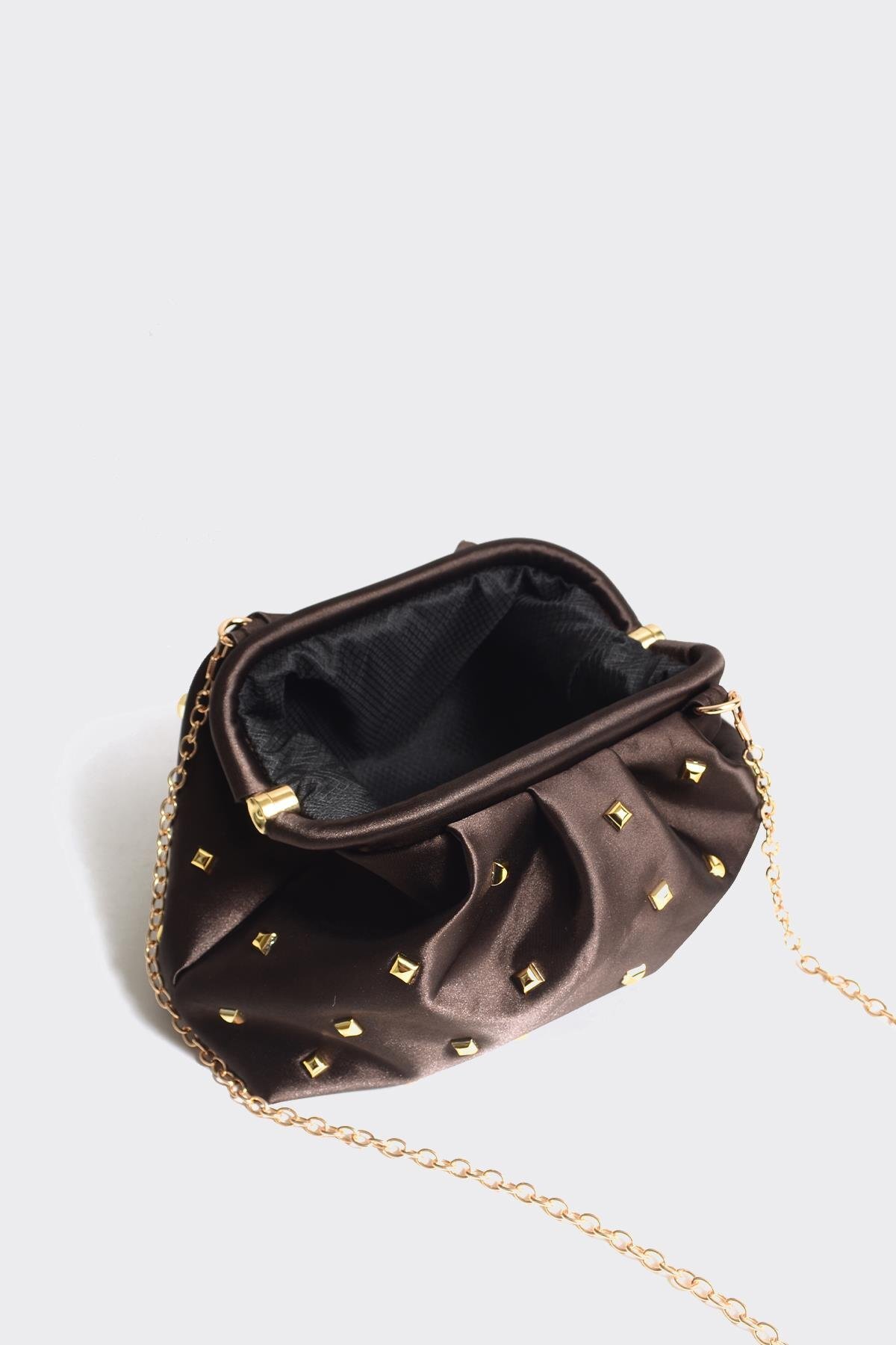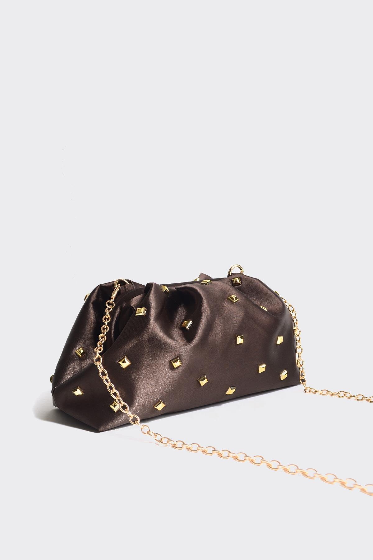 کیف کلاچ طراحی شده با استفاده از ساتن باکیفیت و بادوام ساخته شده است که در عین زیبایی، احساس لطافت و راحتی را به کاربر میبخشد. رنگ قهوهای تیره، ضمن این که حس خنکای یک عصر زیبای پاییزی را منتقل میکند، جذابیت بیشتری به این کیف میدهد و با سنگهای طلایی درخشان، ترکیبی دلربا ایجاد کرده است. این جزئیات خاص و لوکس، کیف کلاچ را به گزینهای ایدهآل برای مهمانیها و مراسمهای خاص تبدیل میکند.