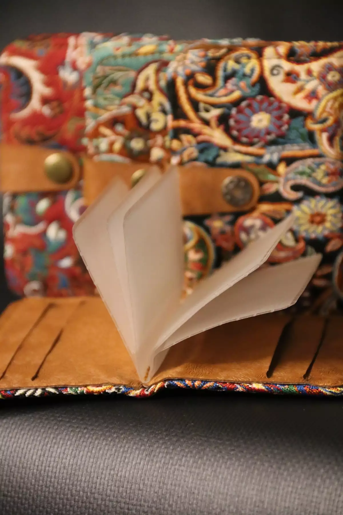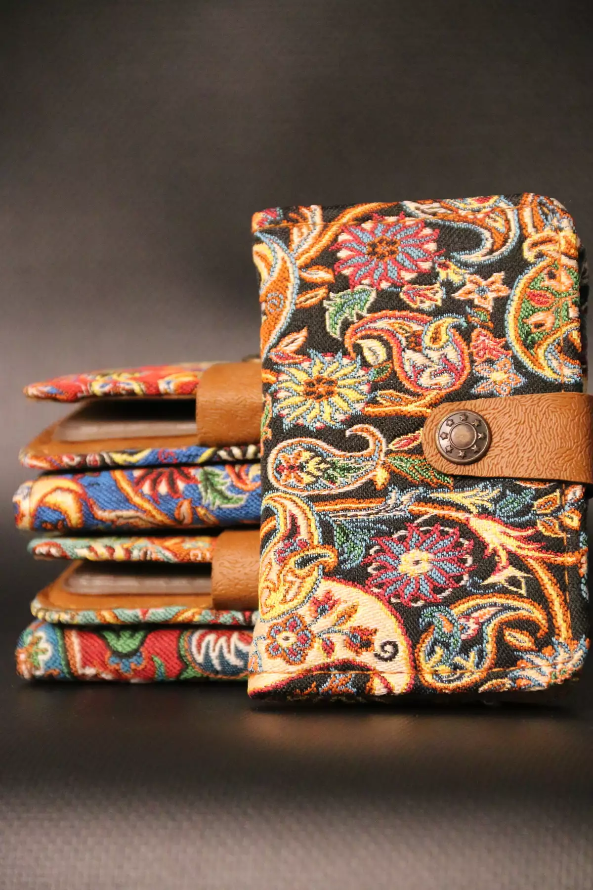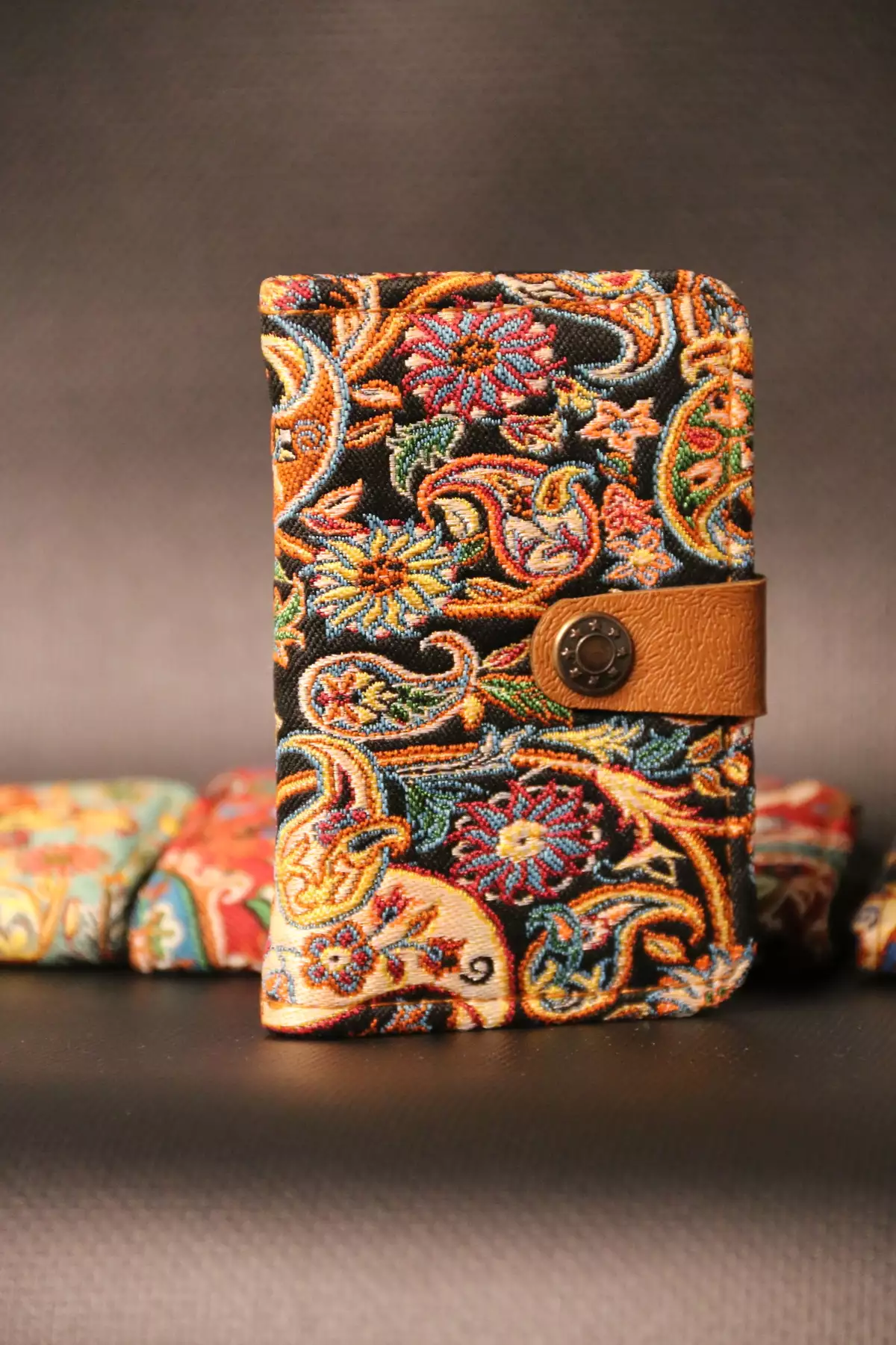 کیف پول طرح گلیم ترمه، با طرح قومی، شفاف، زیبا و مقاوم، کیف کارت برند PUJİVA