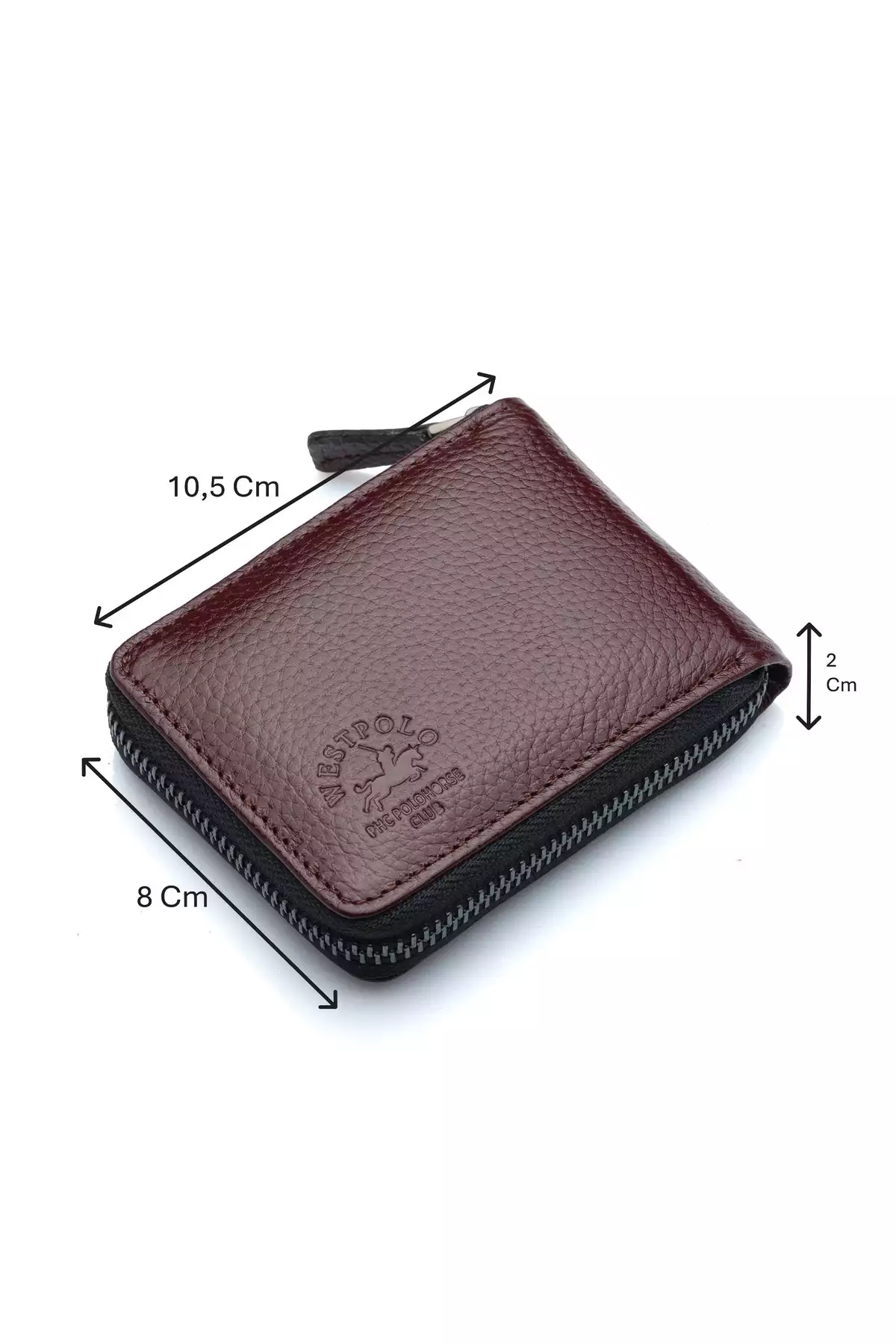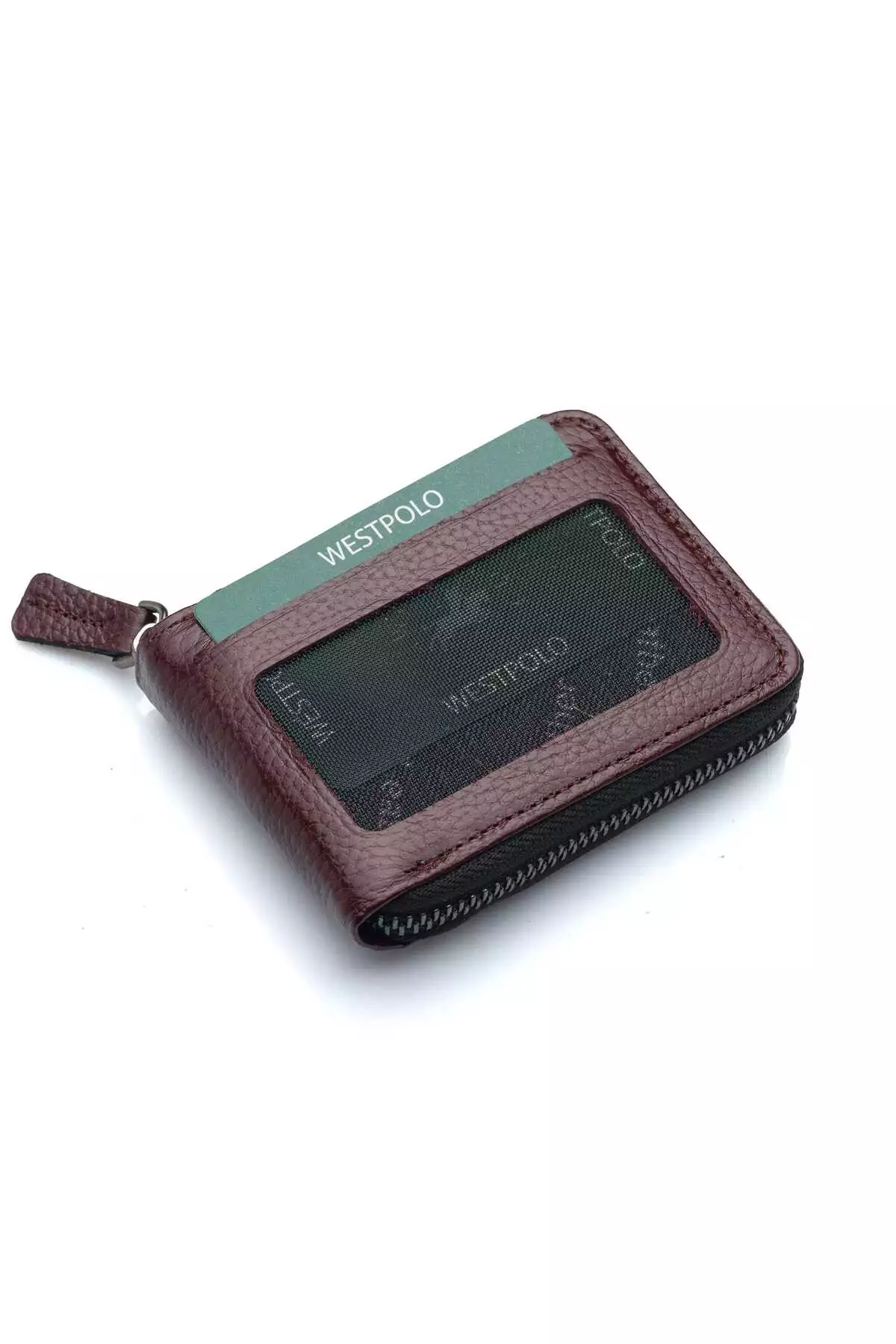 کیف پول واقعی چرم با چندین محفظه شفاف برای کارت و زیپ، مدل یونیسکس