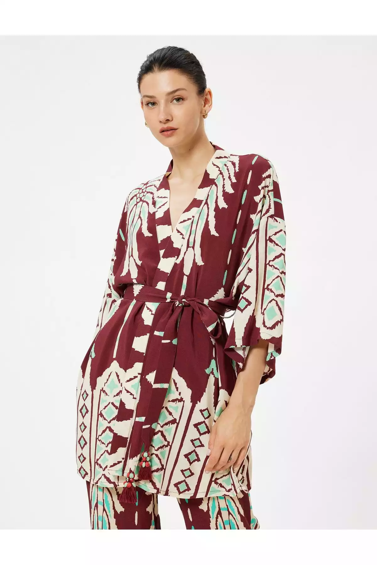 یکی از ویژگیهای برجسته این کیمونو، طرح گلهای زیبا و دلنشین آن است که بر روی زمینهای زیبا قرار گرفته است. این طراحی، به محصول حالتی شاداب و زنانه میبخشد و آن را به یک انتخاب عالی برای استفاده در مراسمهای غیررسمی یا دورهمیها تبدیل میکند. همچنین، جزئیات کمربند آن، به خوبی بر روی کمر نشسته و زیبایی و جذابیت این لباس را دوچندان میکند.