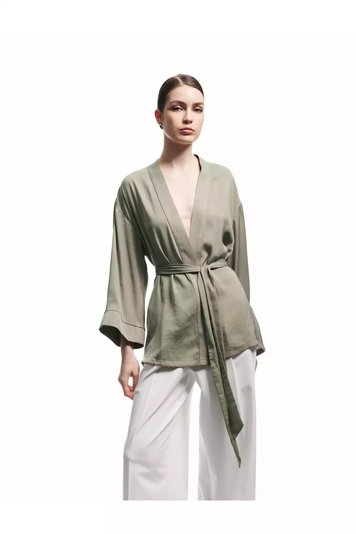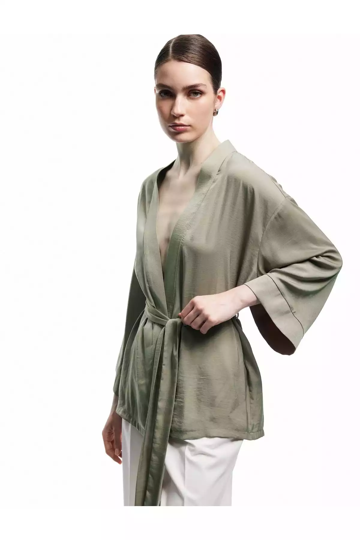 کیمونو ساتن با آستینهای عریض و تزئینات کمربند از پارچه ایرابین، یک گزینه جذاب و شیک برای علاقهمندان به مد روز و راحتی است. این کیمونو با طراحی خاص خود، به راحتی همراه با انواع لباسها و استایلها قابل ترکیب است و میتواند به عنوان یک لایهی اضافی شیک در هر مهمانی یا قرار ملاقات مورد استفاده قرار گیرد.