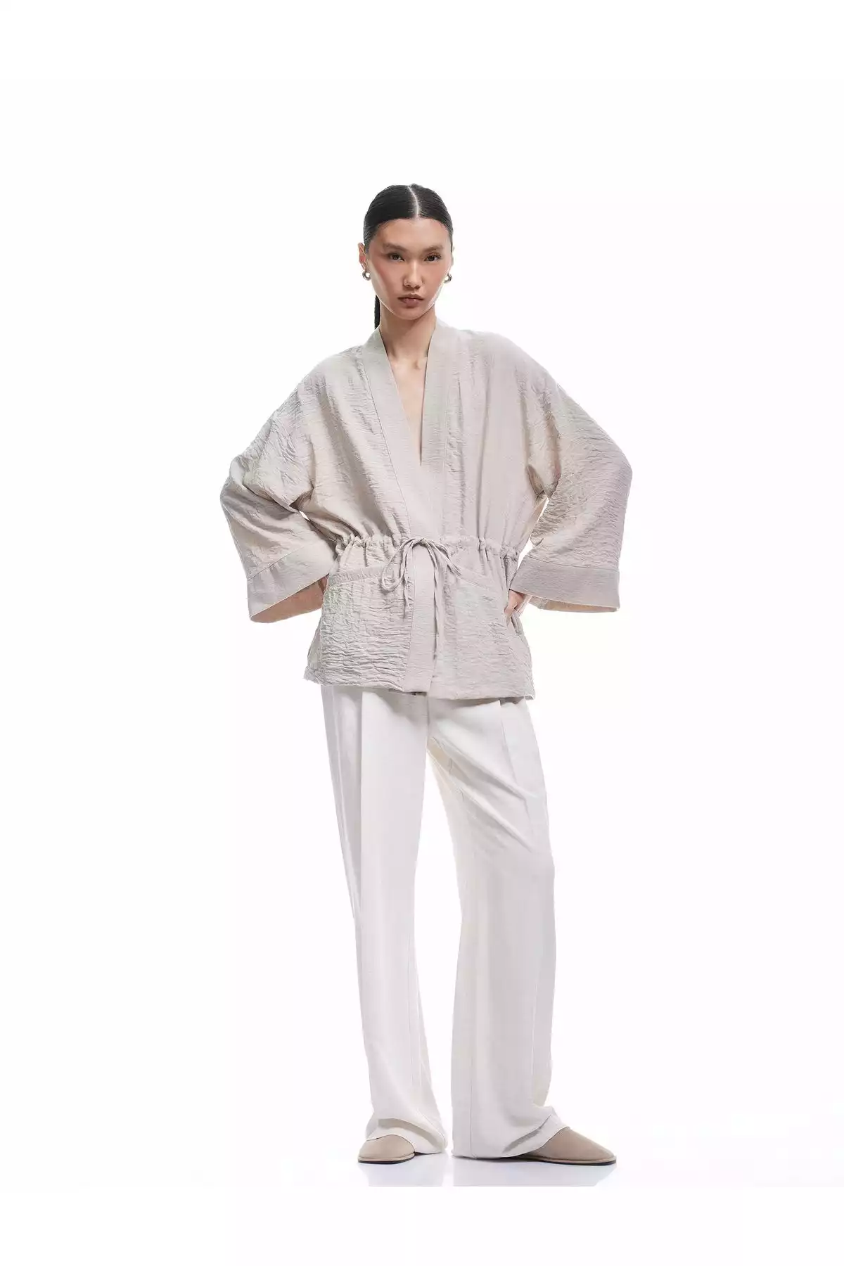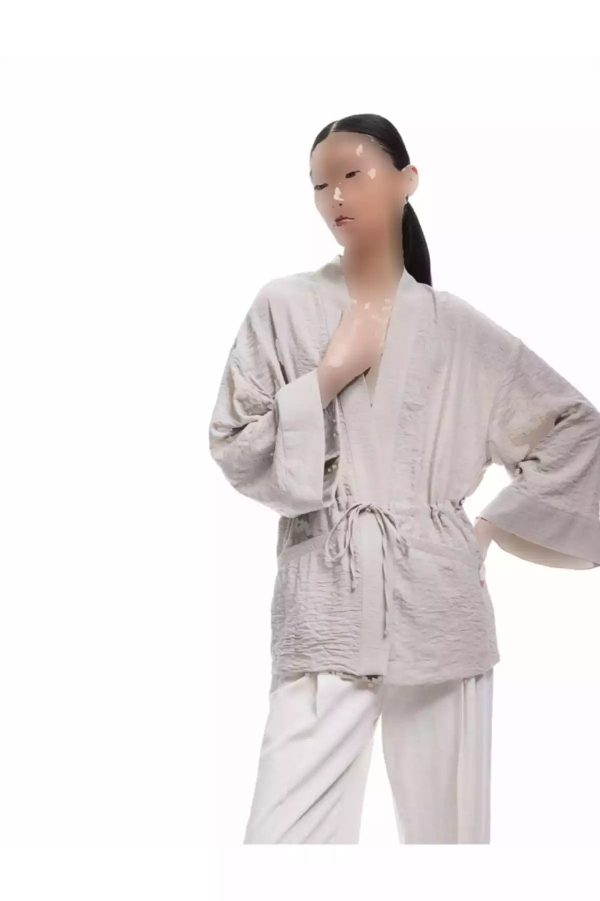کیمونو کُرووازه با آستین بلند و جزئیات بند در کمر کد 1752768785