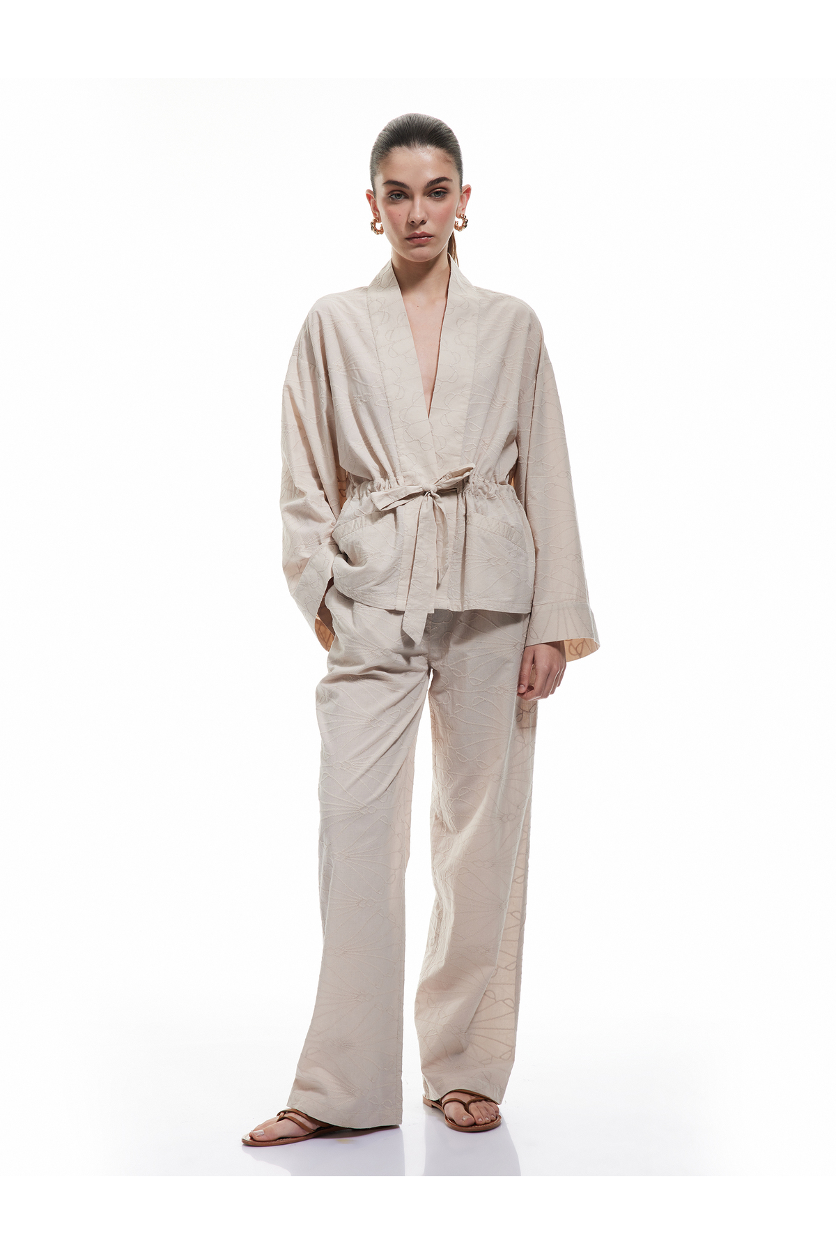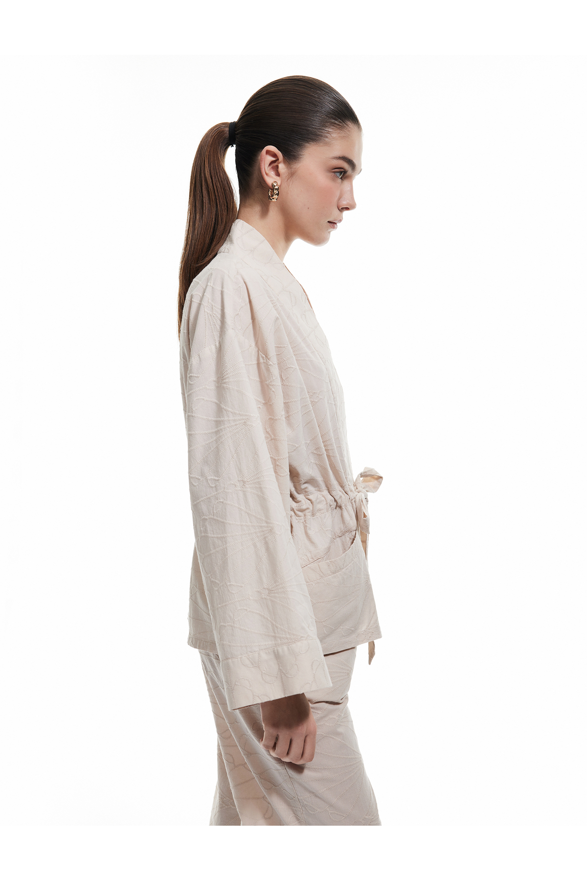 از دیگر ویژگیهای این کیمونو، وجود جیبهای کاربردی است که به شما این امکان را میدهد تا وسایل کوچکی همچون گوشی، کلید و سایر اقلام ضروری را به راحتی با خود حمل کنید. جیبها نه تنها عملی هستند بلکه به زیبایی کلی طراحی نیز افزوده میشوند. این ویژگی باعث میشود که کیمونو به گزینهای عملی و جذاب تبدیل شود.