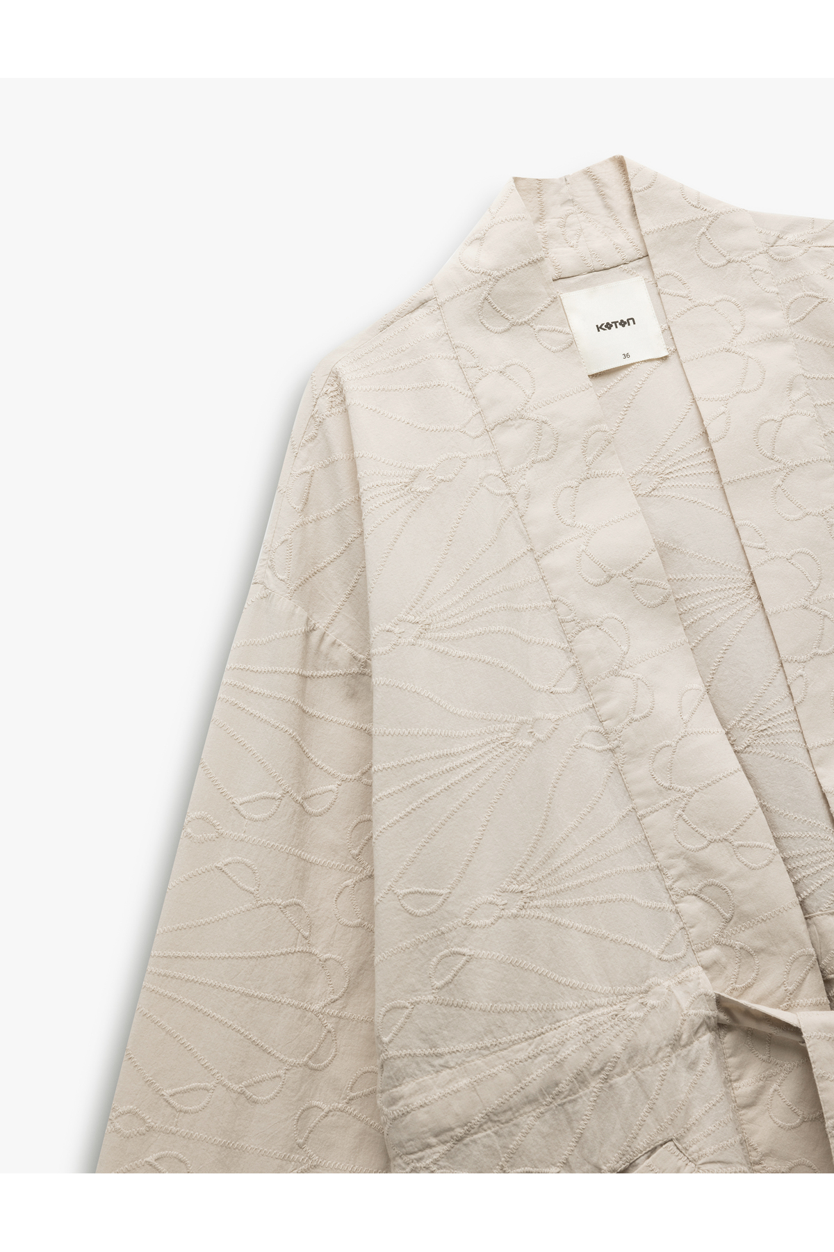طراحی کجدوزی این کیمونو نه تنها جذابیت آن را افزایش میدهد، بلکه بر روی بدن به خوبی نشسته و میتواند به شکل طبیعی و زیبا بر تن شما بیفتد. آستینهای بلند این محصول به شما این امکان را میدهند که در فصول سردتر نیز از آن استفاده کنید و به راحتی بر روی لباسهای دیگر بپوشید. بند دار بودن کیمونو نیز بسیار جذاب است و شما میتوانید با توجه به سلیقه فردی خود آن را در ناحیه کمر بسته و ظاهری شیک و مدرن ایجاد کنید.