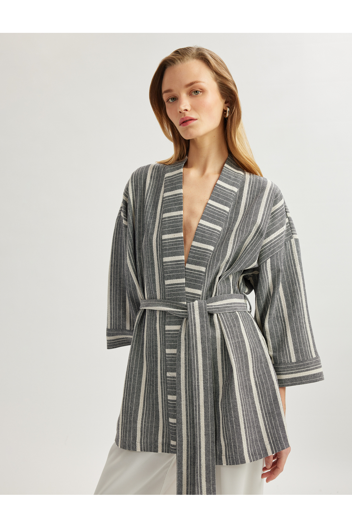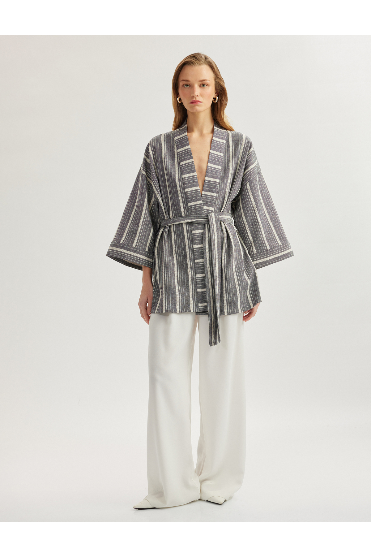 کمر این کیمونو به شما این امکان را میدهد که به راحتی آن را تنظیم کنید و به فرم دلخواه خود درآورید. این ویژگی به آن کمک میکند تا با انواع تیپهای بدنی سازگاری داشته باشد و برای هر کسی مناسب باشد. شما میتوانید آن را با لباسهای زیری کلاسیک یا حتی با شلوارهای جین یا دامنهای فانتزی ترکیب کنید و استایلی منحصر به فرد بسازید.