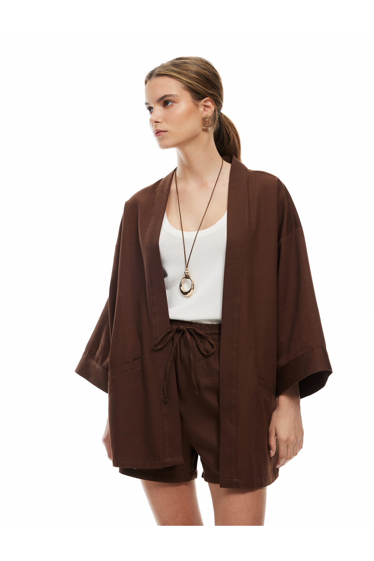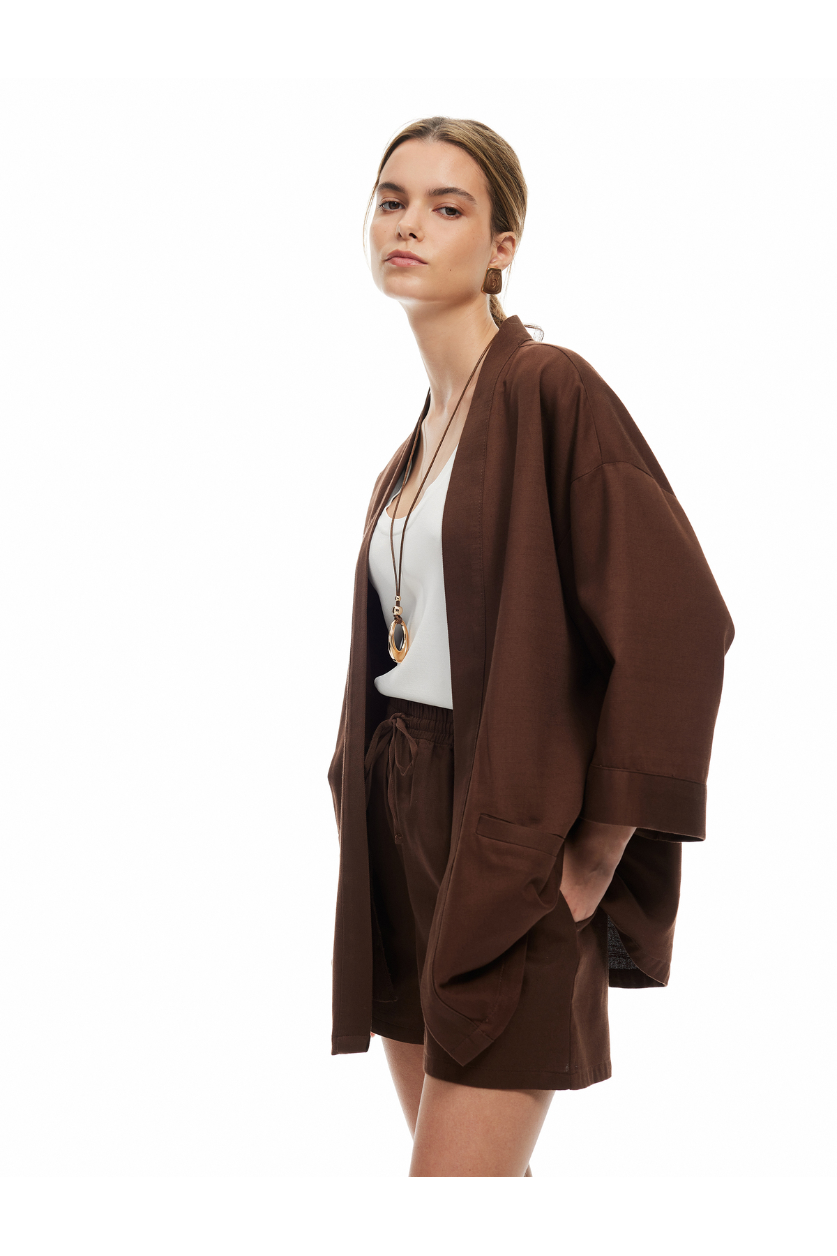 وجود جیب در دو طرف کیمنو، علاوه بر زیبایی، کارایی آن را نیز افزایش میدهد. جیبهای عمیق و کاربردی این محصول به شما اجازه میدهند تا وسایل ضروری مانند موبایل یا کلید را به راحتی در دسترس داشته باشید. این ویژگی باعث میشود که این کیمنو علاوه بر زیبایی، برای استفادهی روزمره نیز مناسب باشد و به عنوان یک گزینهی کاربردی در کمد لباسها قرار گیرد.