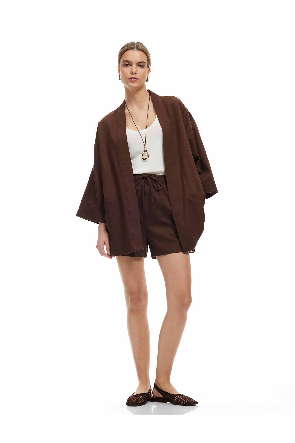 طراحی مینیمالیستی و رنگهای متنوع این کیمنو به شما امکان میدهد آن را با انواع مختلفی از لباسها پوشش دهید. میتوانید آن را با شلوار جین، دامن یا حتی روی یک لباس مجلسی استفاده کنید و به راحتی استایلی شیک و متفاوت خلق کنید. این ویژگی به ویژه برای کسانی که به تنوع پوشش اهمیت میدهند، جذاب است.