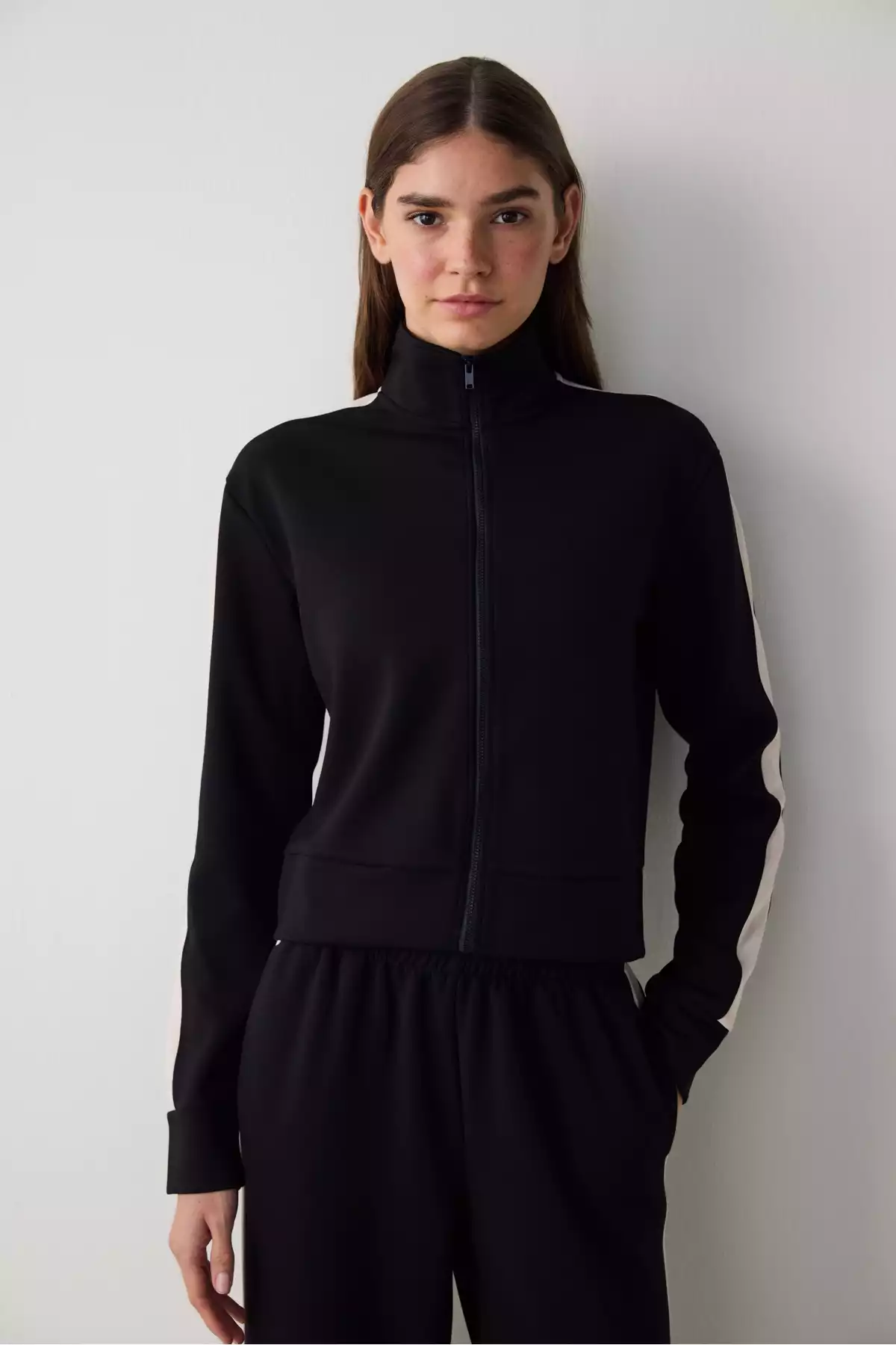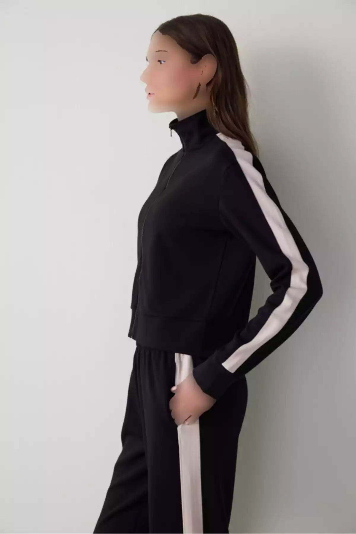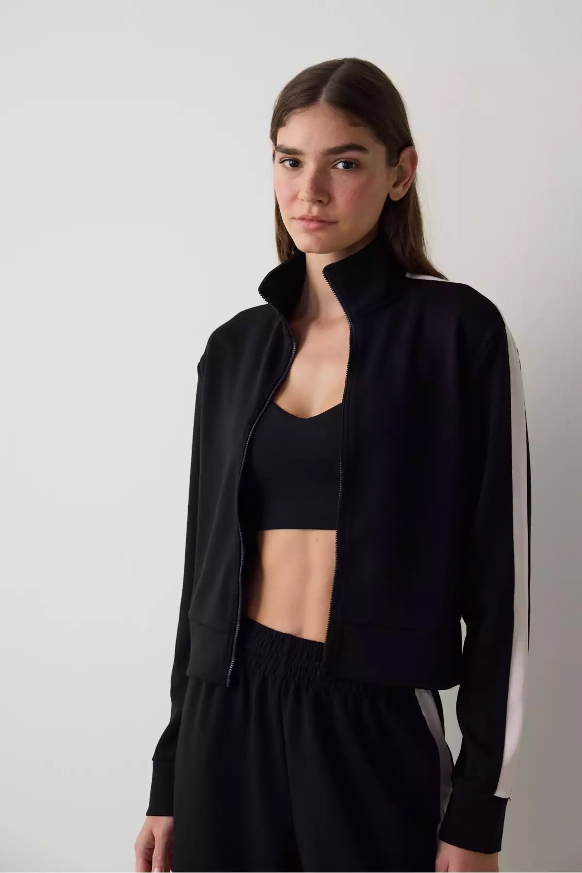 کت ورزشی یقهدار نازک و سیاه همچنین از نظر ظاهری بسیار شیک و مدرن طراحی شده است. استفاده از خطوط ساده و هماهنگ در طراحی به این کت ظاهری حرفهای و استایل مدرن میبخشد. این امر به کاربران این امکان را میدهد که نه تنها در حین تمرین، بلکه در هنگام رفت و آمدهای روزمره نیز احساس خوبی داشته باشند.