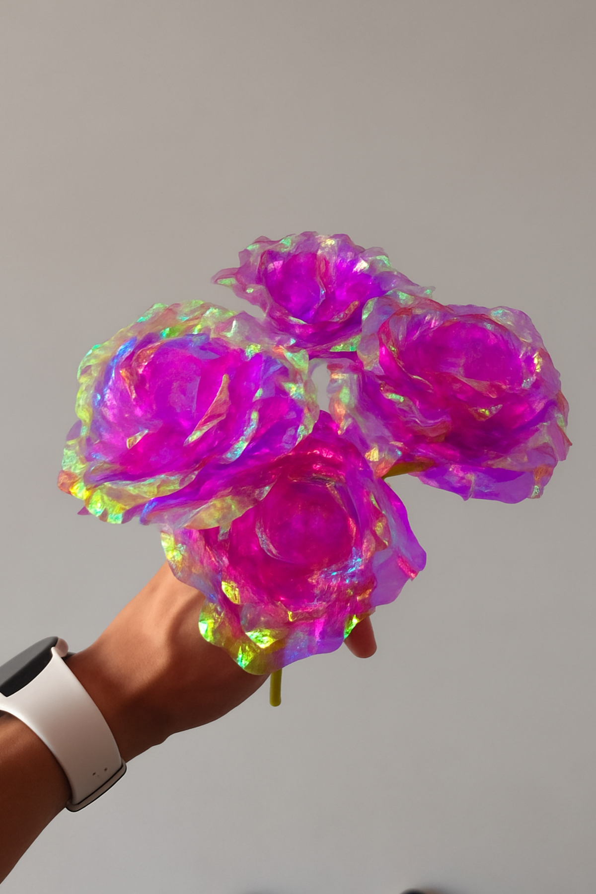 گل بیپایان هولوگرامی رنگارنگ یک گزینه منحصر به فرد و خاص برای ابراز عشق و محبت شما به عزیزانتان است. این محصول با طراحی زیبای خود به اندازه ۲۴ سانتیمتر و رنگهای شاداب و متنوع، به راحتی میتواند هر فضایی را زیباتر کند. این گلها نه تنها جلوهای زیبا دارند، بلکه با خاصیت هولوگرامی خود، نور را به شکلهای جالب و جذابی بازتاب میدهند و حس زنده بودن را به محیط هدیه میکنند.