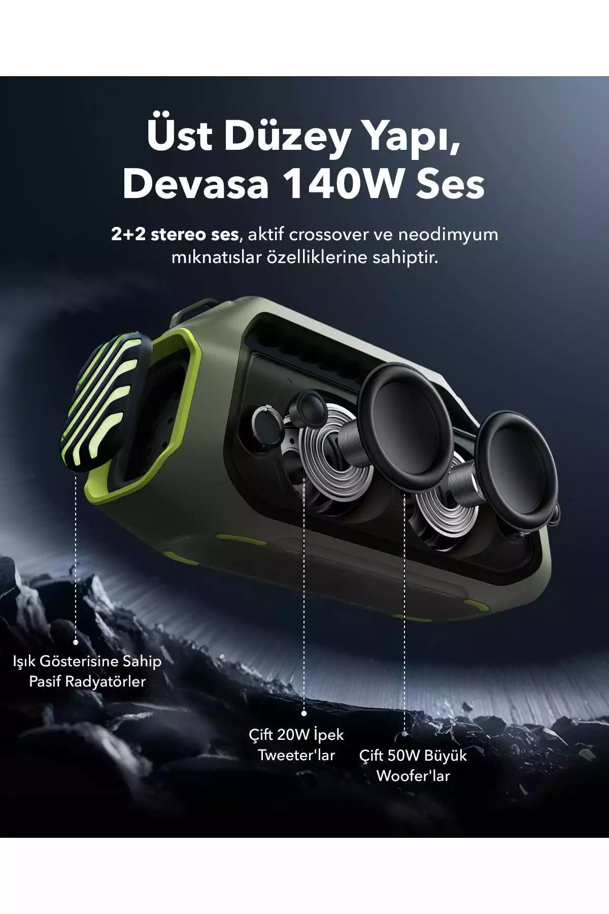 اسپیکر بلوتوث Soundcore Boom 2 Plus یک گزینه ایدهآل برای کسانی است که به دنبال یک تجربه صوتی با کیفیت و قابل حمل هستند. این اسپیکر با طراحی مدرن و رنگ سبز خاص خود، علاوه بر کارایی بالا، جذابیت ظاهری نیز دارد. با بهرهمندی از تکنولوژی بلوتوث، این اسپیکر به راحتی به انواع دستگاهها متصل میشود و امکان پخش آهنگهای مورد علاقه شما را بدون نیاز به سیم فراهم میکند.