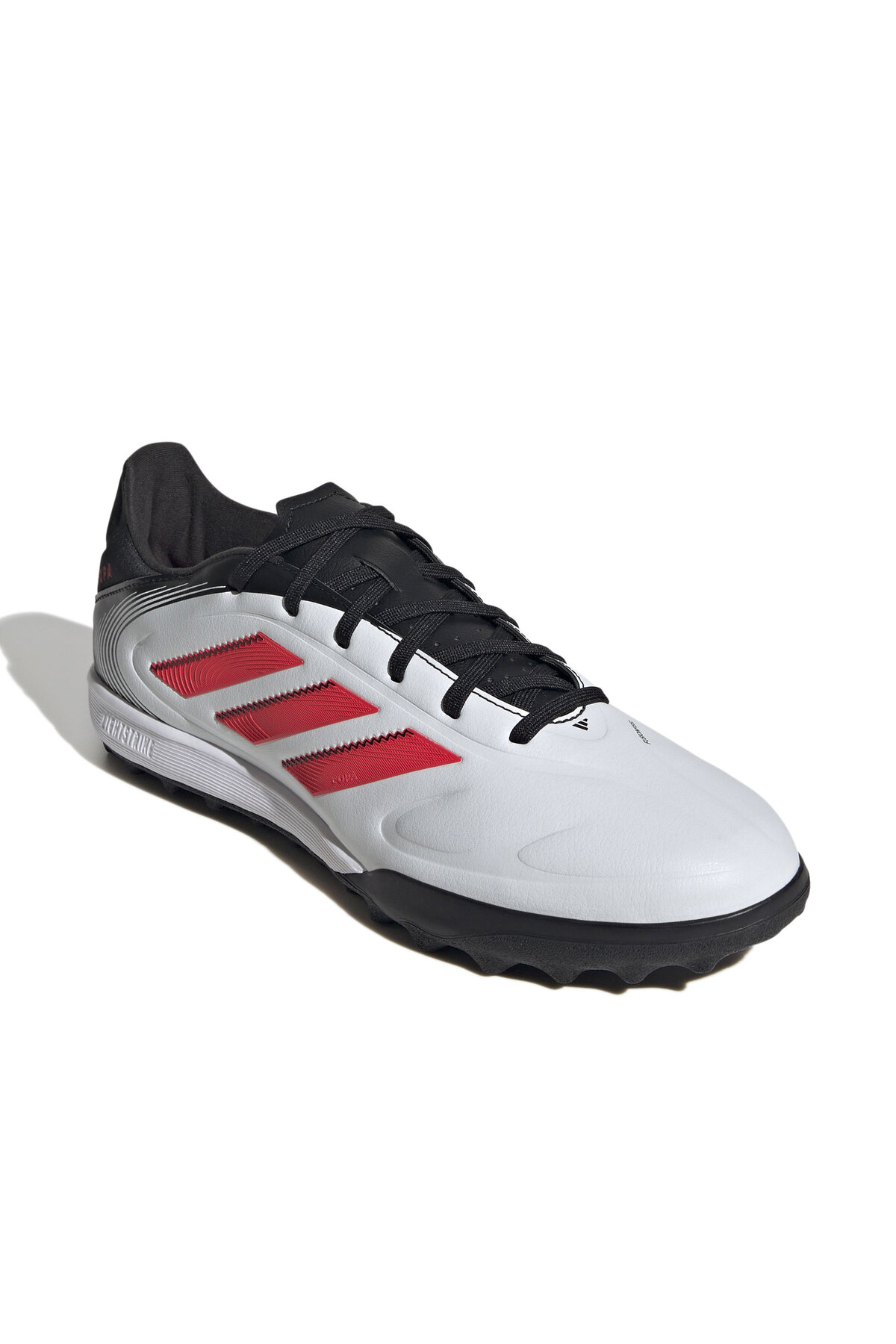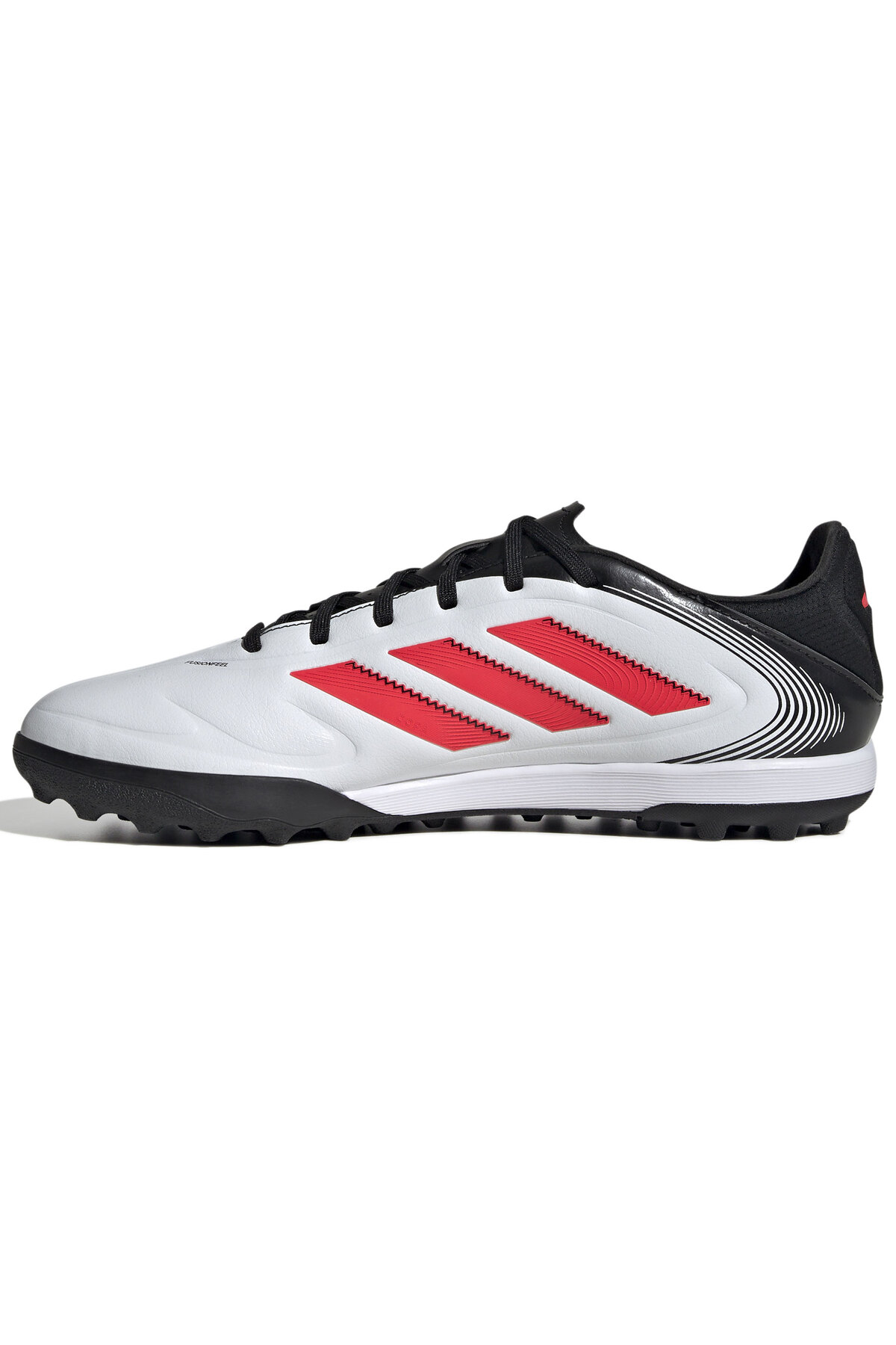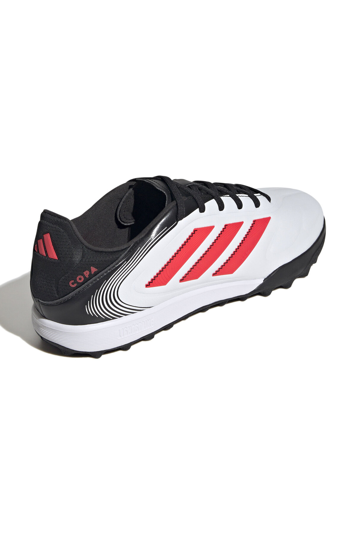 کفی داخلی کفش Copa Pure III League Tf با دقت طراحی شده تا حداکثر پشتیبانی و راحتی را فراهم کند. این بخش از کفش با استفاده از فومهای نرم و پشتیبان، فشار و ضربههای وارده بر پای بازیکن را جذب میکند، که این امر به کاهش خستگی و آسیب احتمالی کمک بسیاری میکند. این طراحی باعث میشود که بازیکنان بتوانند بدون دردسر و با تمرکز بر بازی، عملکرد بهتری از خود نشان دهند.