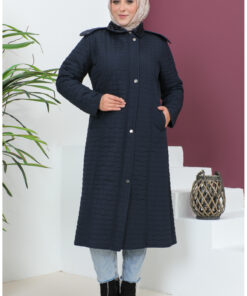 پالتو کاپشن بزرگبدن با کلاه، شماره 5061-02، رنگ سرمهای. کد 1742262669