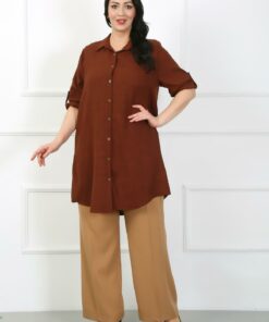 تونیک بزرگ سایز زنانه، طرحدار به رنگ سرخ خشت از پنبه و ویسکوز. کد 1742344868