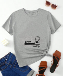 تیشرت بزرگ سایز بارداری با چاپ در حال بارگذاری نوزاد رنگ خاکستری کد 1758480064