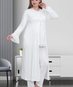 ست پیژامه بارداری و زایمان با جزئیات دانتل و گره جلو. کد 1757054470